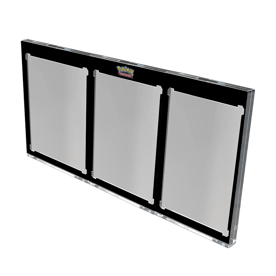Officially licensed ONE-TOUCH 3-CARD magnetic storage and display for up to three standard size cards (2.5 in. x 3.5 in.) up to 35pt in thickness for the Pokemon Trading Card Game