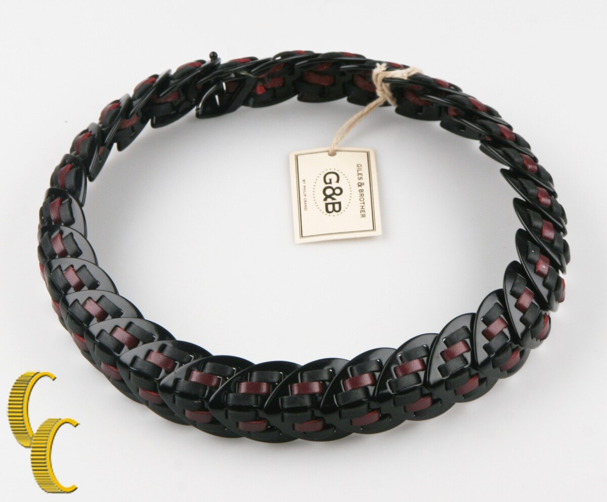 Giles Brother Black Nara Armour Lacquer Leather Necklace MSRP $350