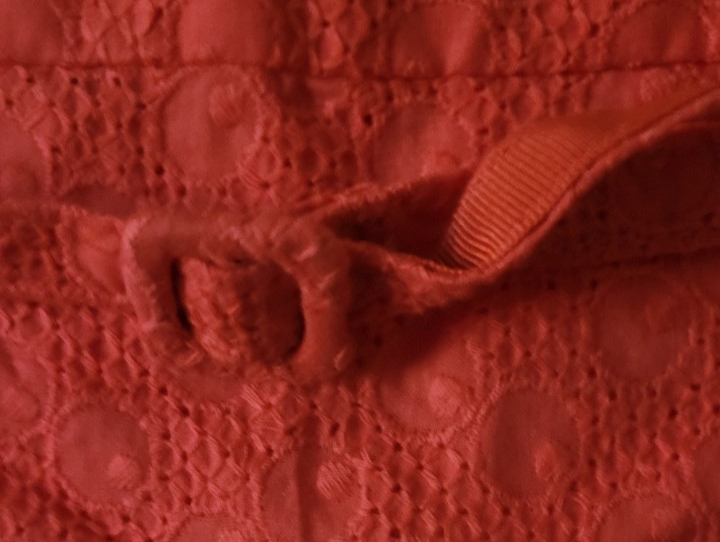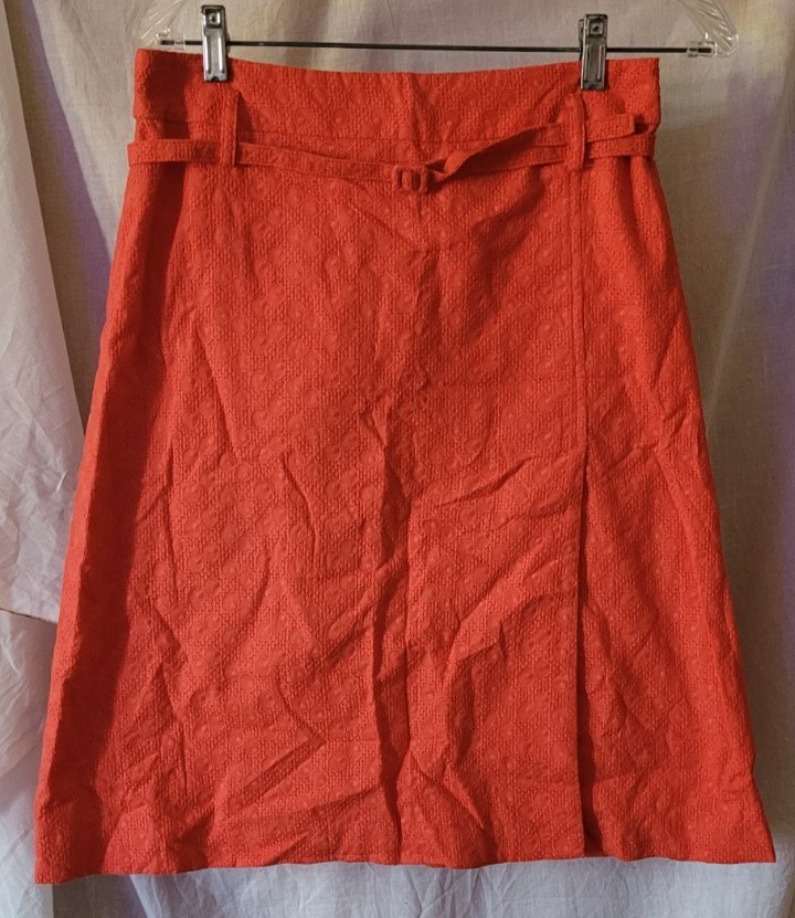 This skirt is in good used condition. There are no holes or stains that I found. The lining is in good used condition. The belt fastens well. The zipper works well. The size is 4. Measurements are approximately: Length: 23.5 inches. Waist: 14.5 inches across.