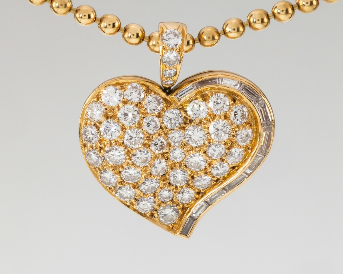 Bulgari Vintage 18k Yellow Gold Diamond Heart Pendant w/ Ball Chain