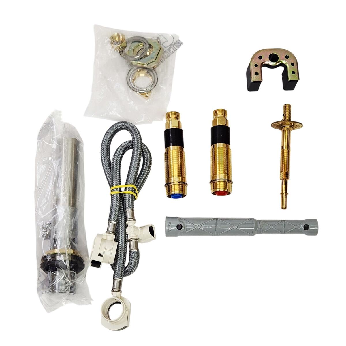 Faucet was missing the pullout hose and the cover of hot/cold indicator. Since it had already been installed without realizing the hose was missing, sending it back was not an option, nor was reinstalling the leaky Moen that it was replacing. Trip to Lowe's was necessary. The soap dispenser is plastic as well as the pullout nozzle. The hot/cold indicator faces away from the sink which is a design flaw. Otherwise, it is a nice looking faucet and functions well.