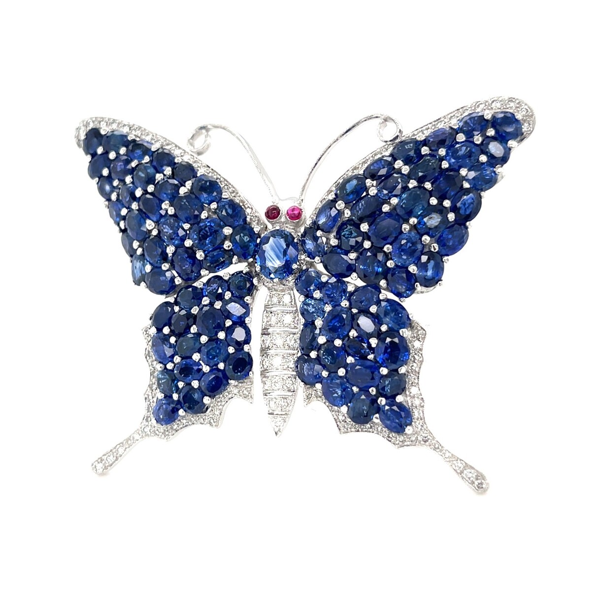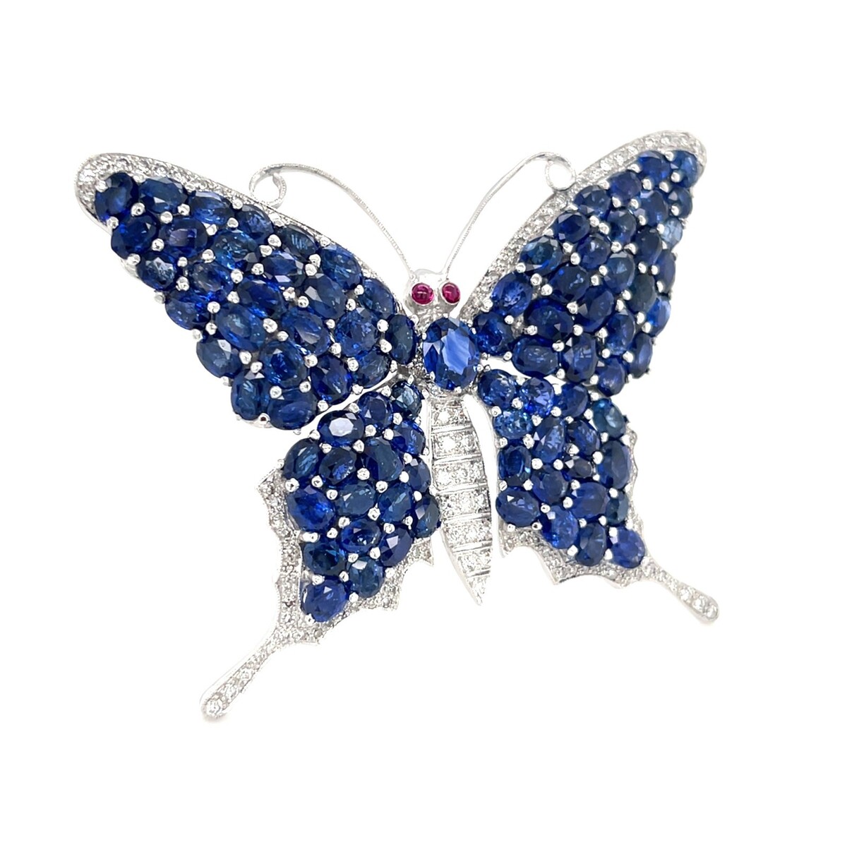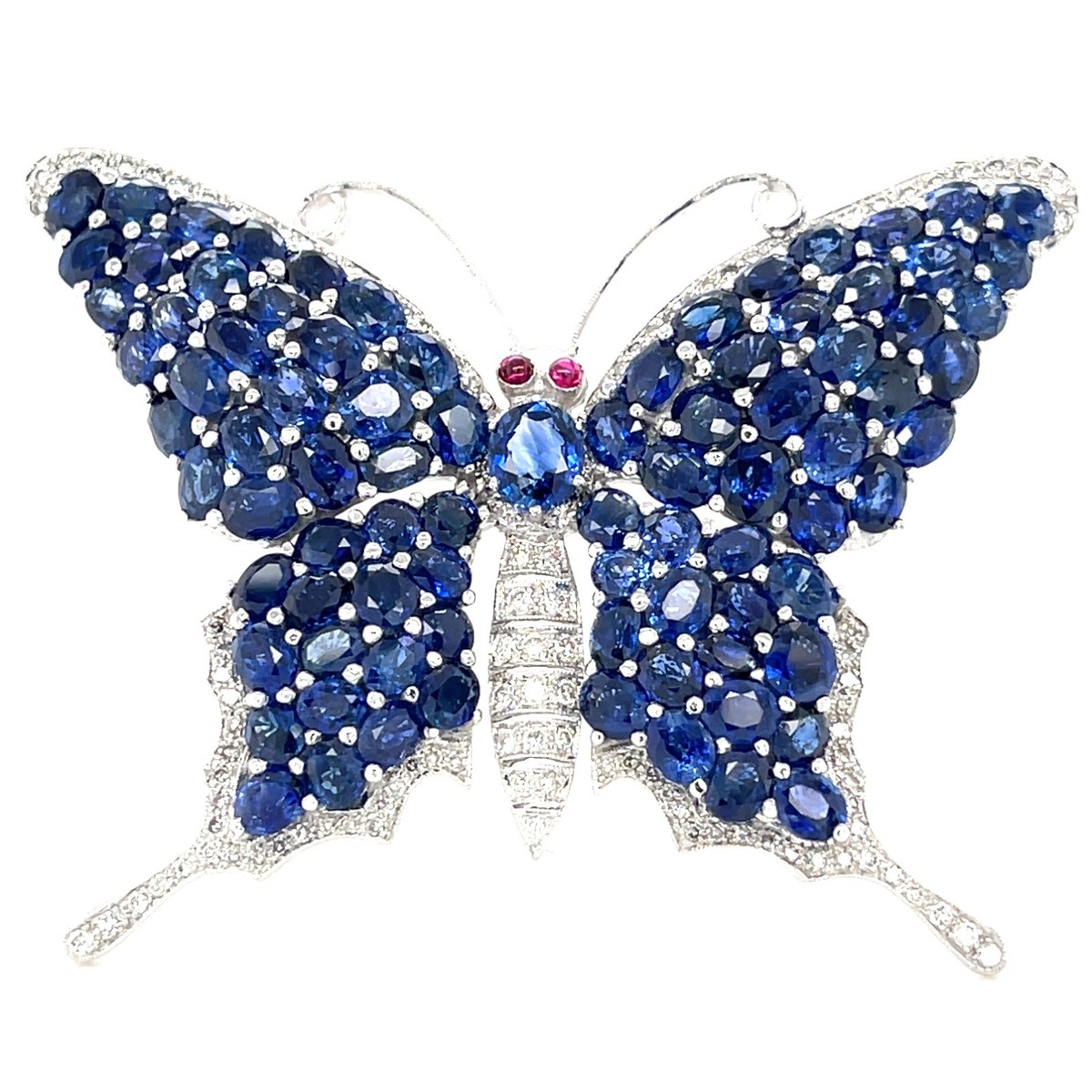 18k Weiss Gold 10.30ct Saphir 1.15ct Diamant Und Rubin Butterfly Pendant-Brooch