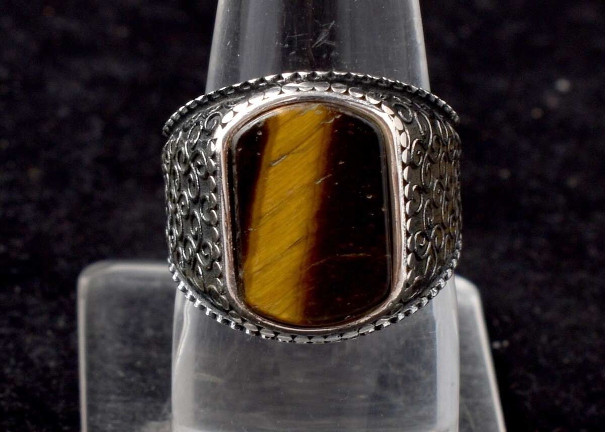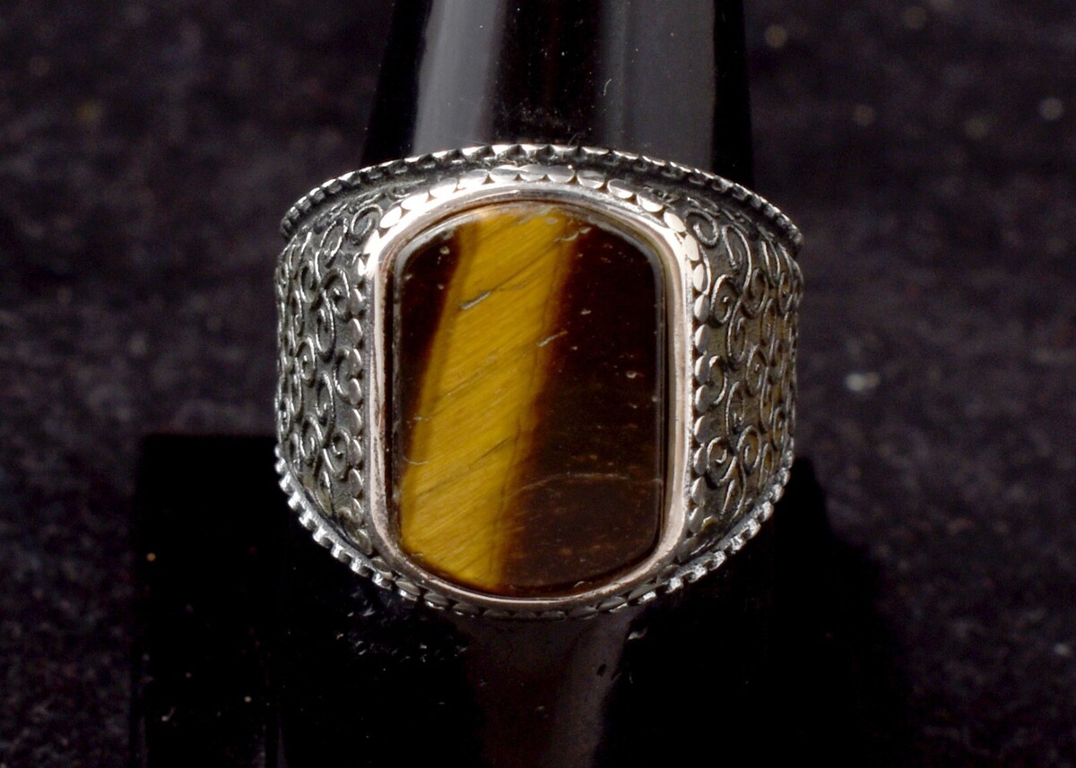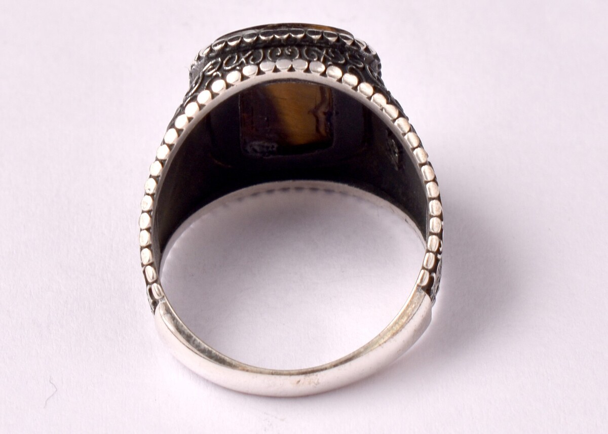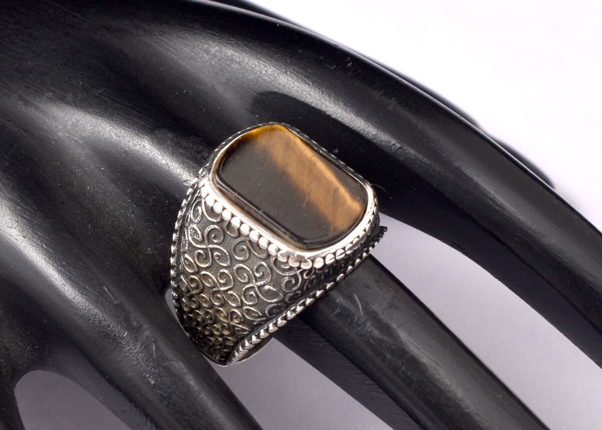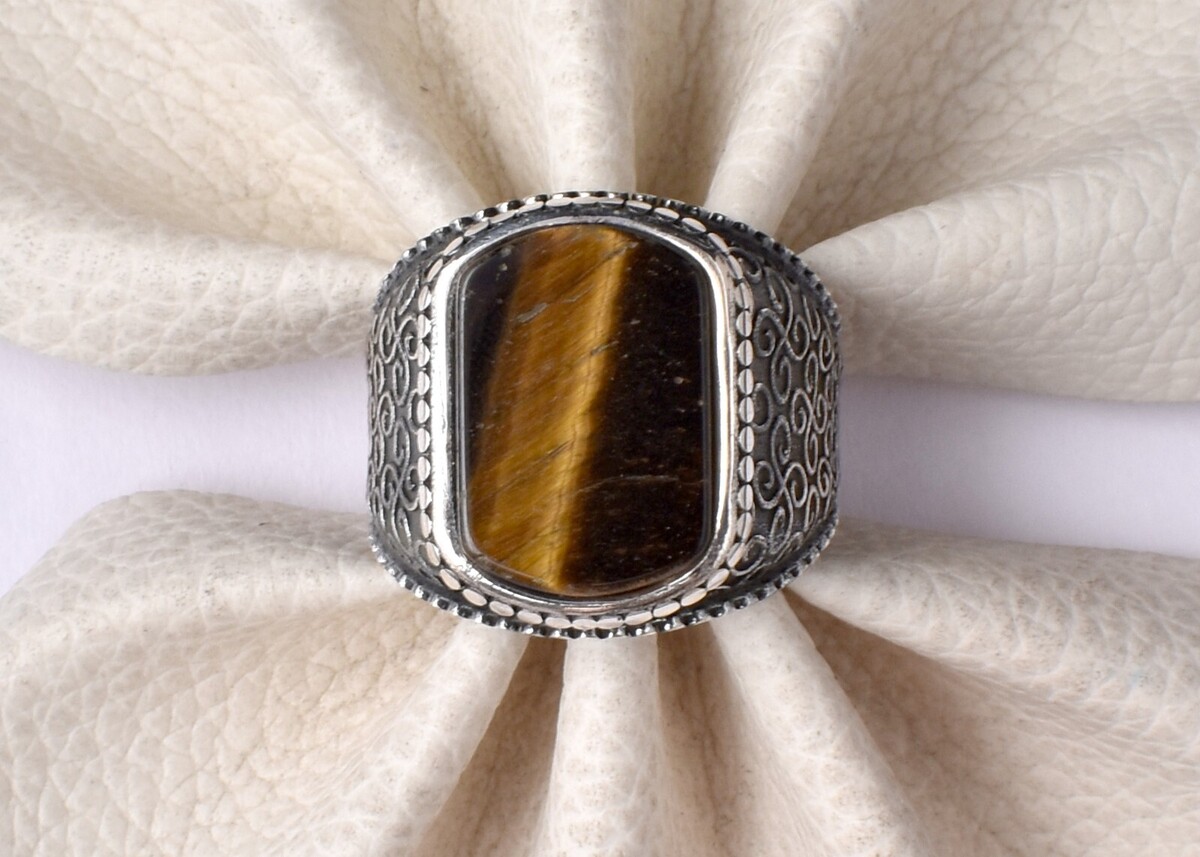 Bague d'usure unisexe en argent sterling 925, pierre précieuse oeil de tigre ...