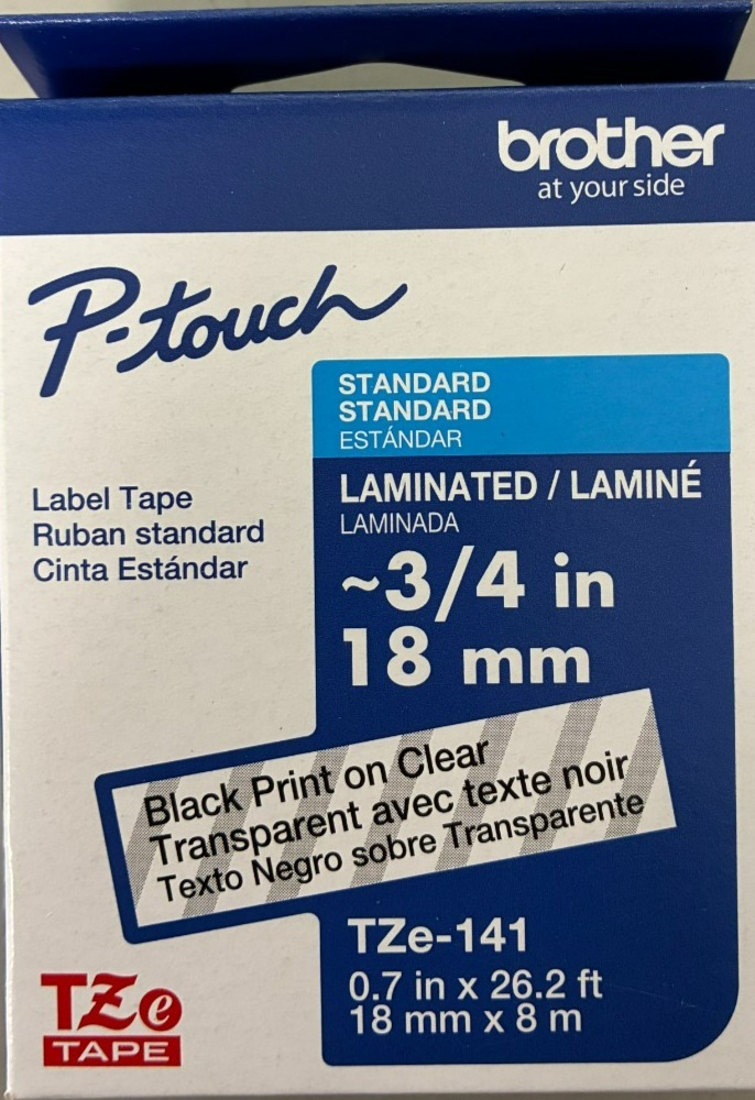 Brother - TZE141G - ~3/4" Black Print on Clear Label Tape