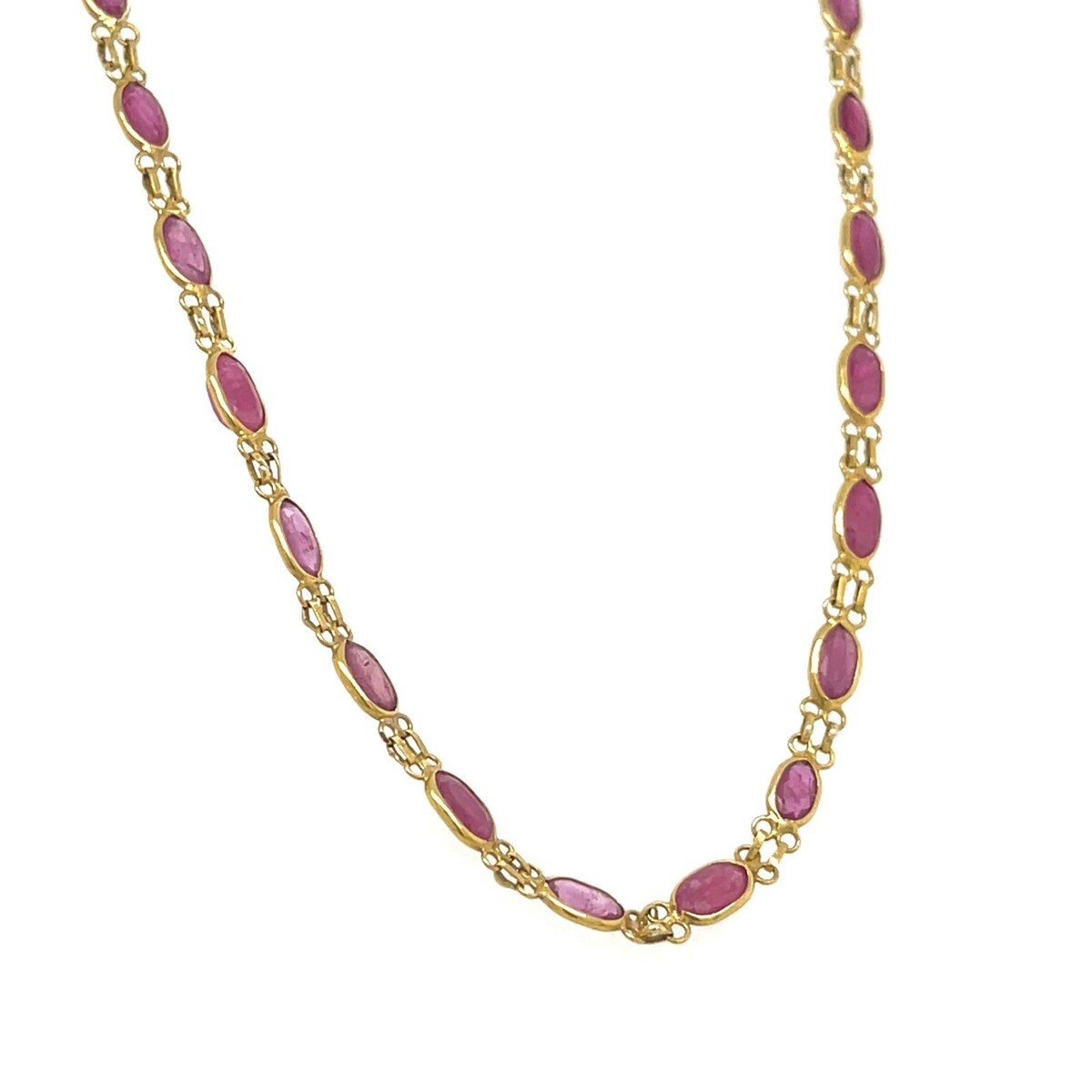 Gorgeous, Dainty Necklace Featuring Oval-Cut Rubies in Bezel Settings