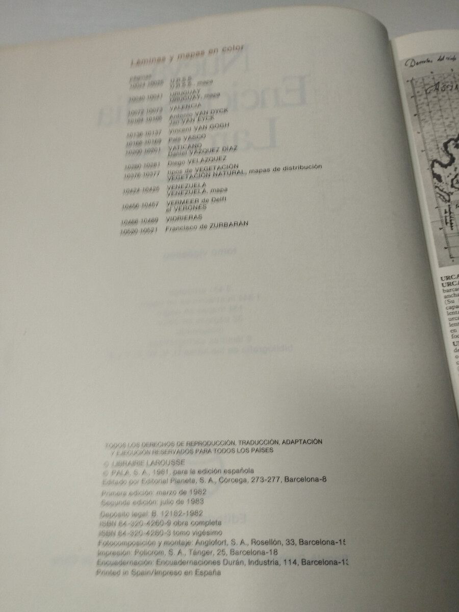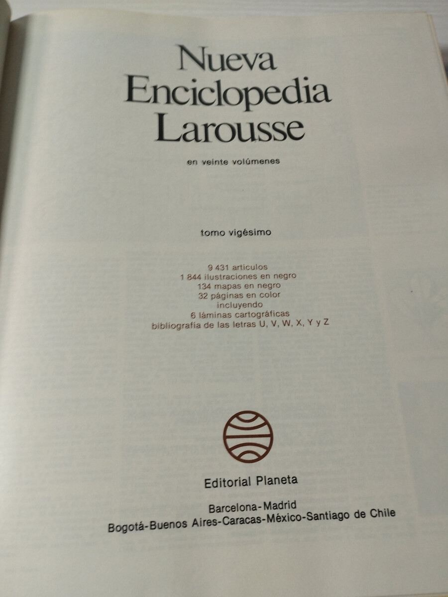New Larousse Encyclopedia Volume Urc-Zyw Volume 20 Planeta 1985 - Spanish BOOK