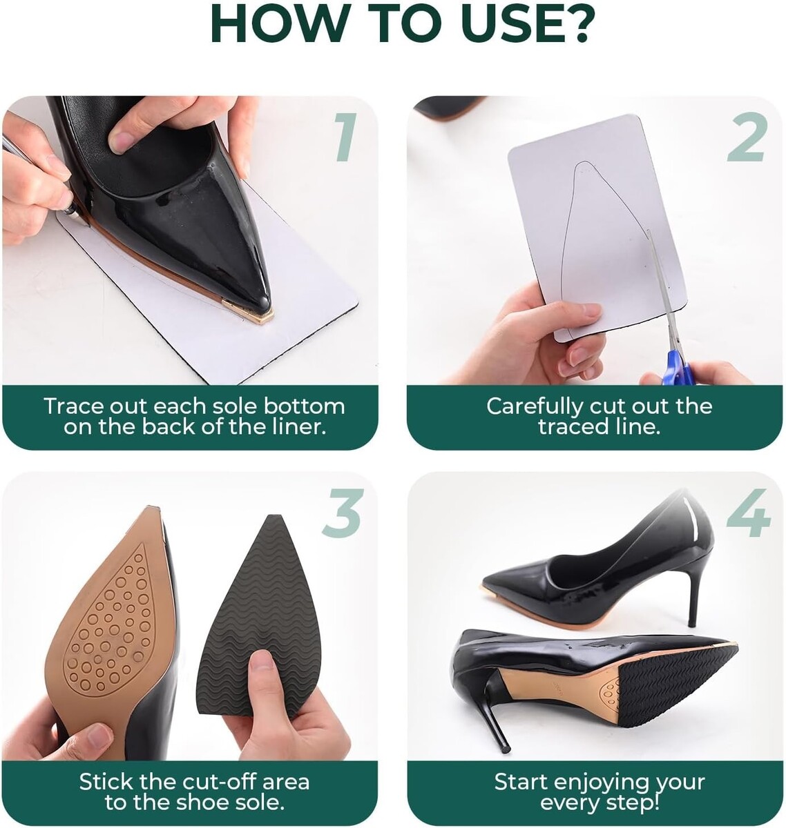 Transform and protect your favorite footwear with our set of 6 Non-Slip Sole Protectors. An instant repair solution that not only enhances the look of your shoes but also doubles their lifespan!