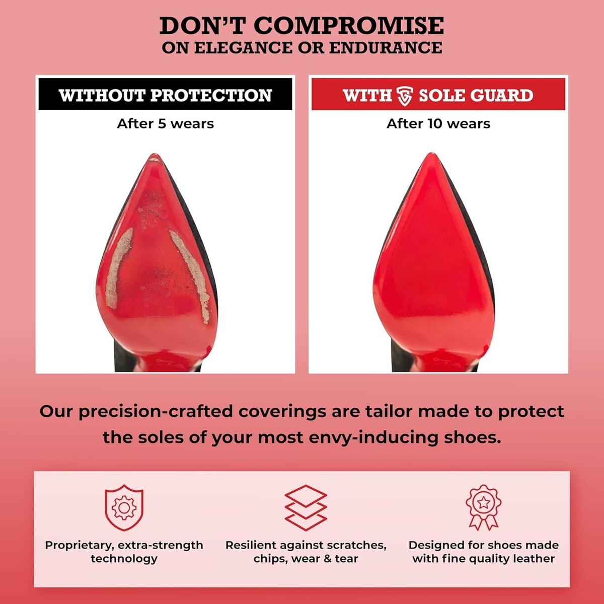 Resilient Against Wear Tear: Our proprietary technology withstands 10 or more wears, protecting your exquisite heels and sandals from scratches and chips.