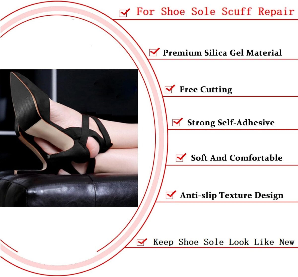 Easy DIY Application: Simple to apply and remove - just clean, cut to shape, peel off the backing, and stick onto your shoe's sole or heel.