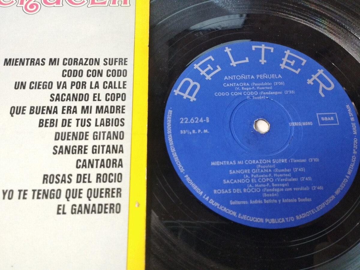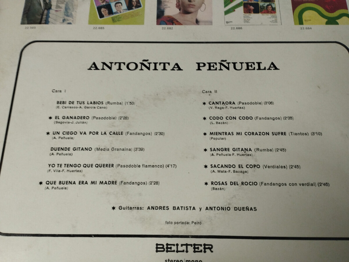 Antoñita Peñuela flamenco Belter 22624 1972 - LP vinyl 12 "Vg/Vg