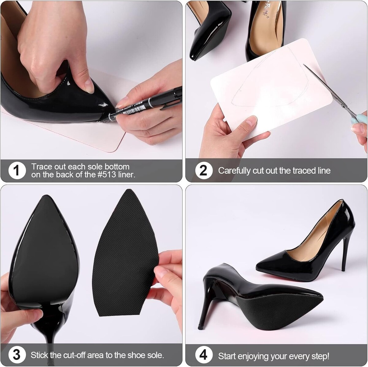 Don?t let wear and tear diminish the beauty of your shoes. Elevate their longevity and style by choosing our Black Silicone Sole Protectors today!