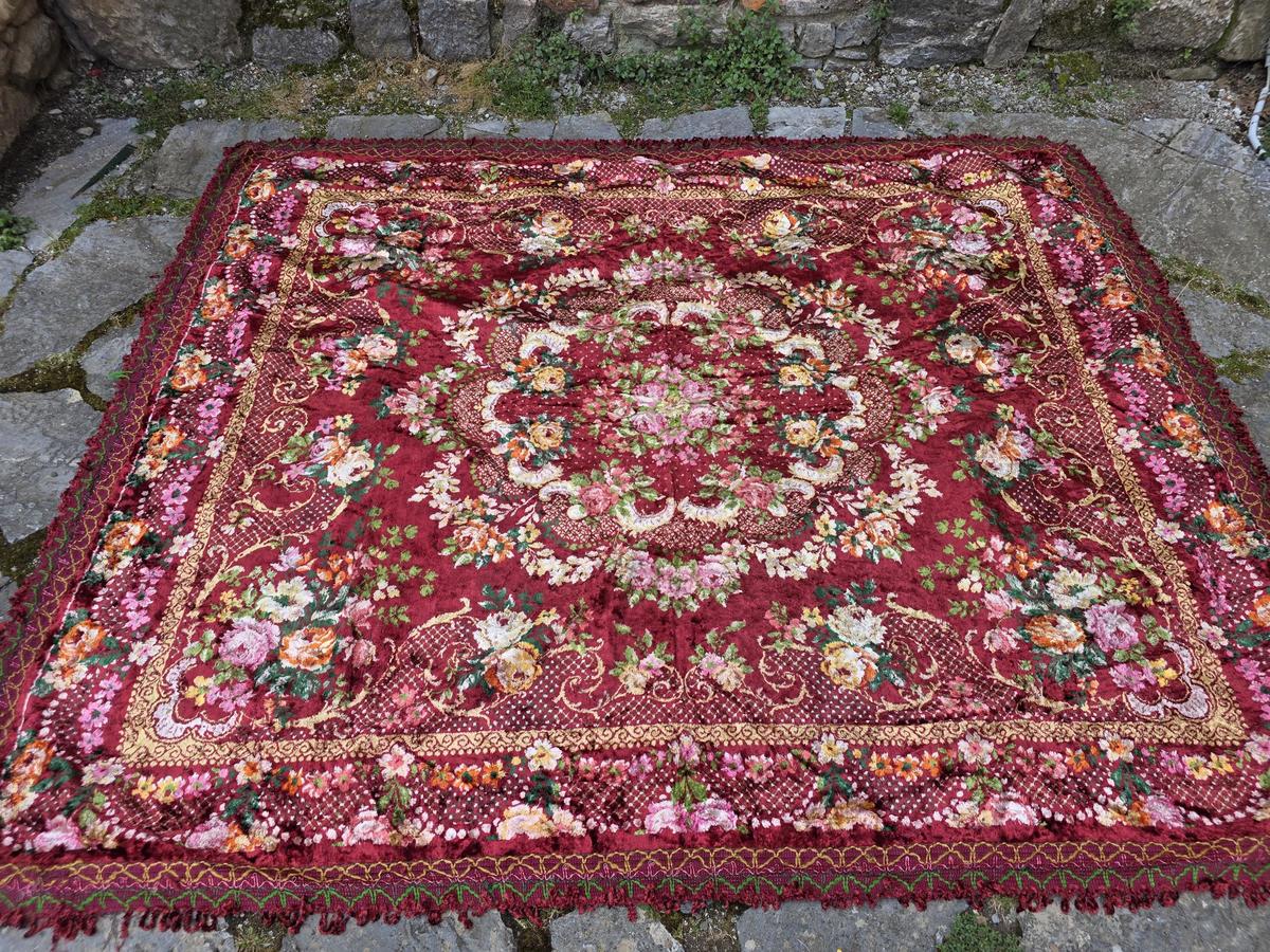 Vintage floral velvet bedspread, Italian velvet bed cover, 70s bohemian bed cove