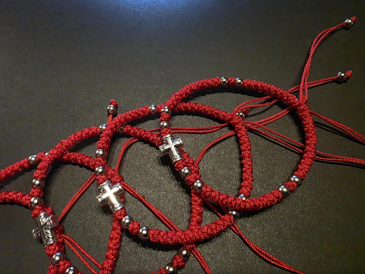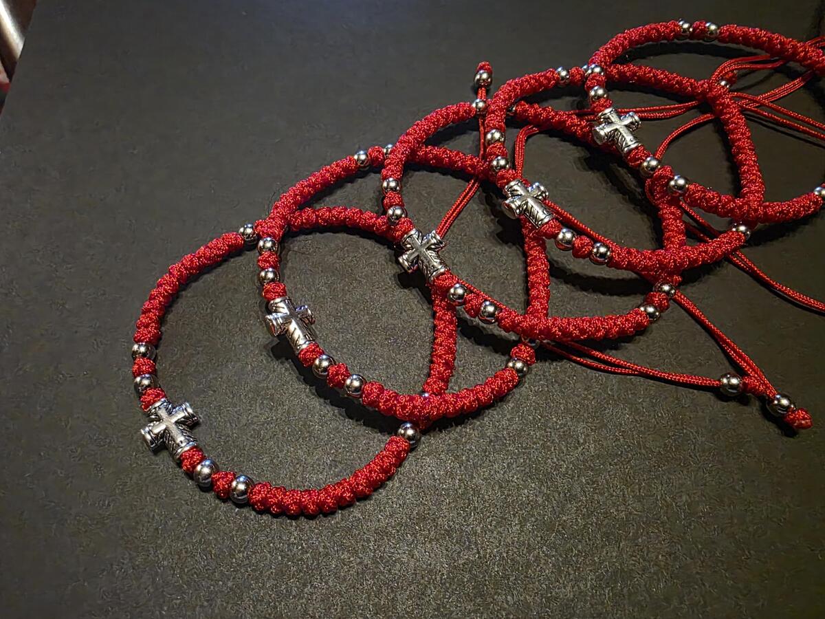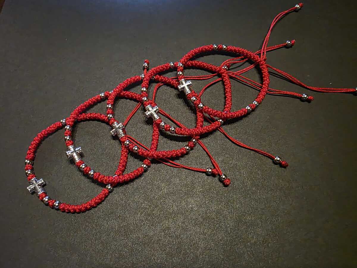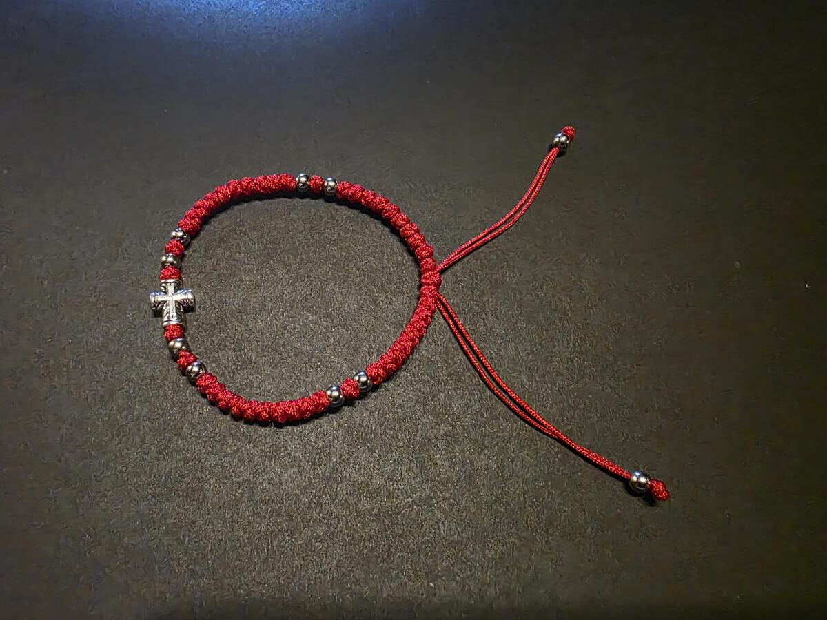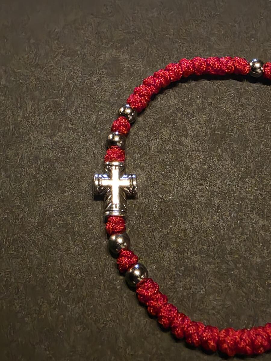 A handmade orthodox Christian prayer rope, bracelet prayer rope. It is a 52-72 thin knots bracelet in red color and extra decorated with beads. The bracelets in our shop are made by priests from the churches in Ohrid, Macedonia, the Balkan's Jerusalem. Completely handmade thin knots every each of them finished with a prayer. The prayer rope is made of high quality waxed wool thread. The waxed thread ensures water resistance and durability.