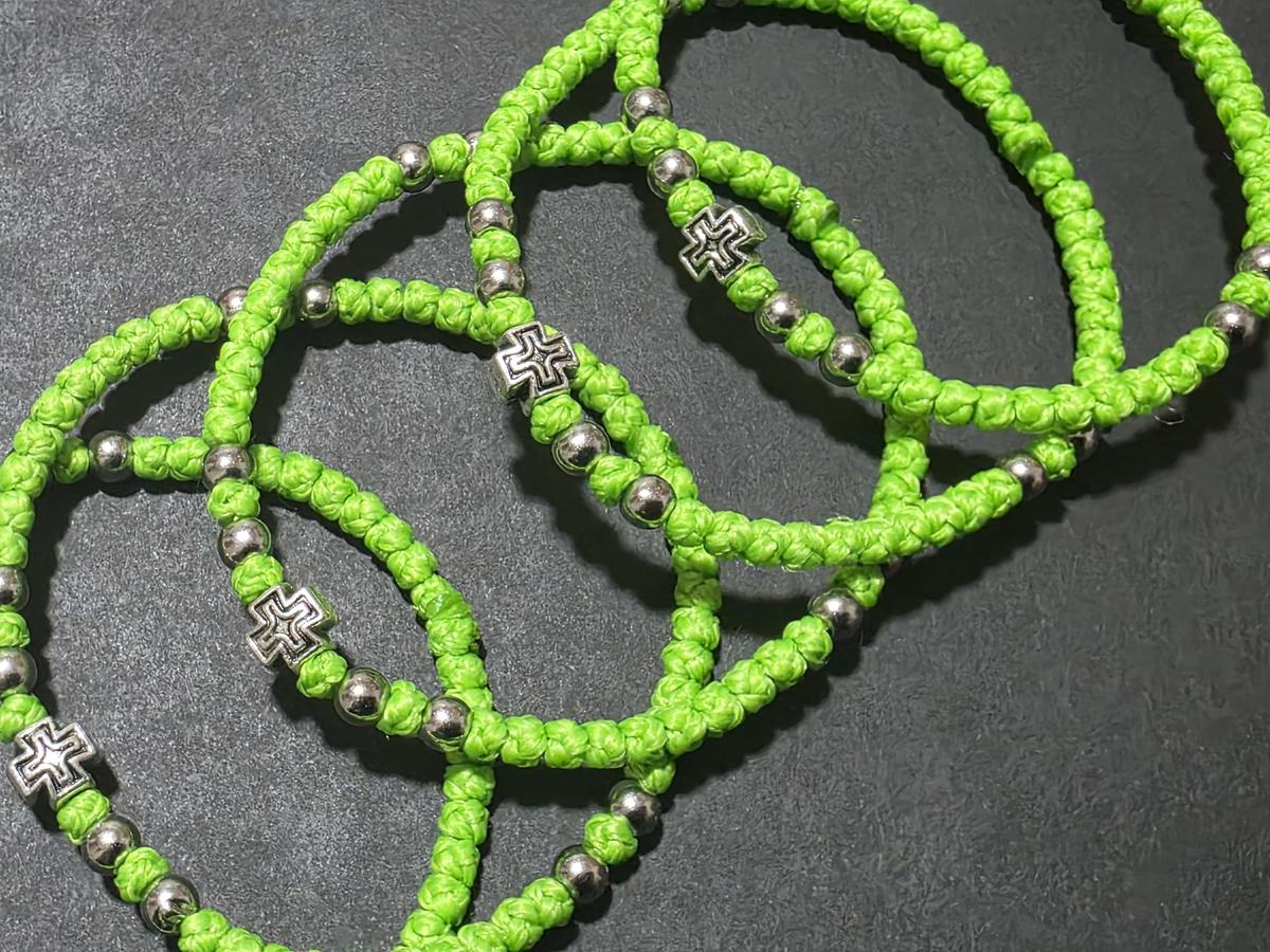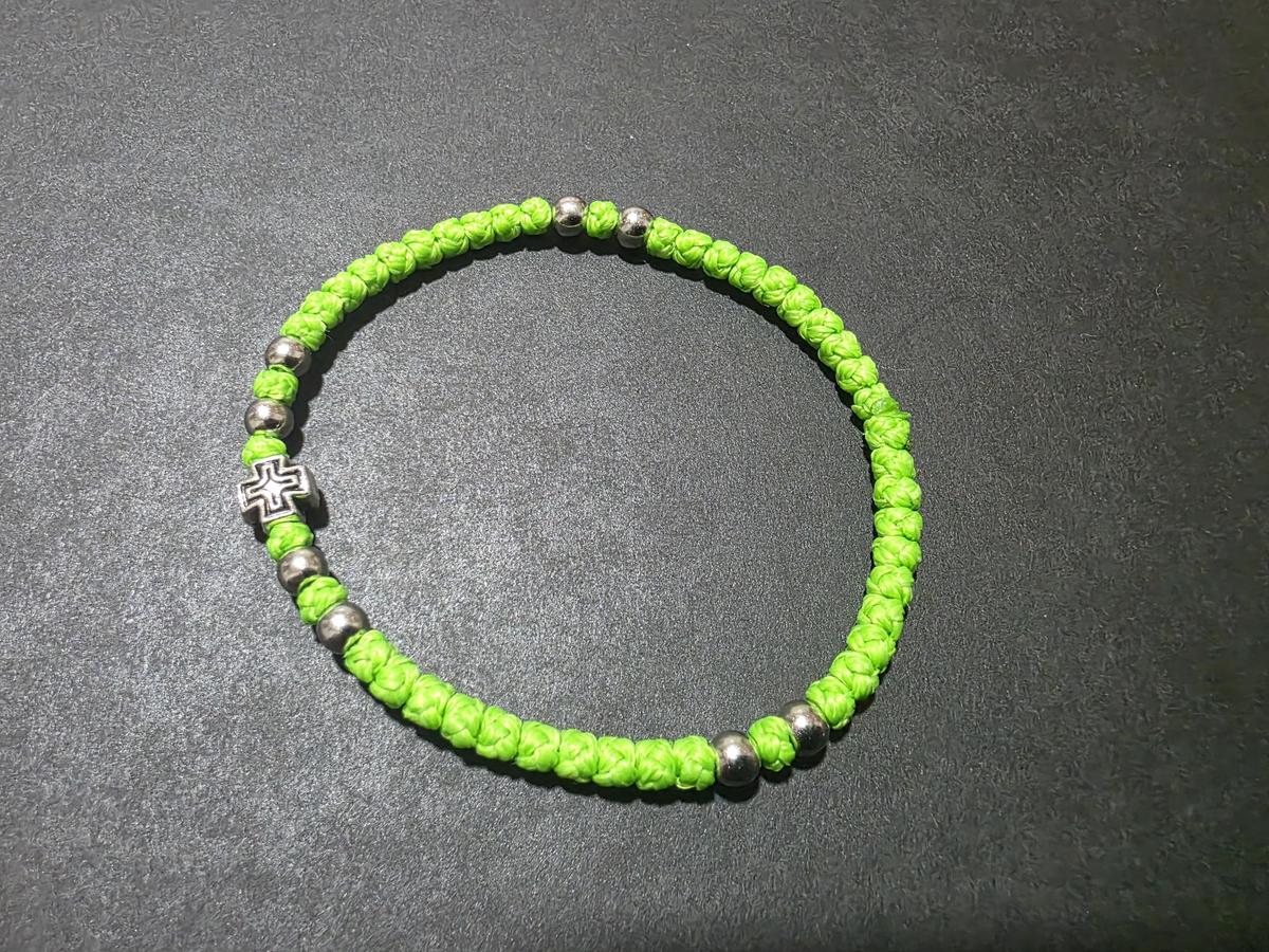 A handmade orthodox Christian prayer rope, bracelet prayer rope. It is a 52-72 thin knots bracelet in grasshopper green color and extra decorated with silver beads. The bracelets in our shop are made by priests from the churches in Ohrid, Macedonia, the Balkan's Jerusalem. Completely handmade thin knots every each of them finished with a prayer. The prayer rope is made of high quality waxed wool thread. The waxed thread ensures water resistance and durability.