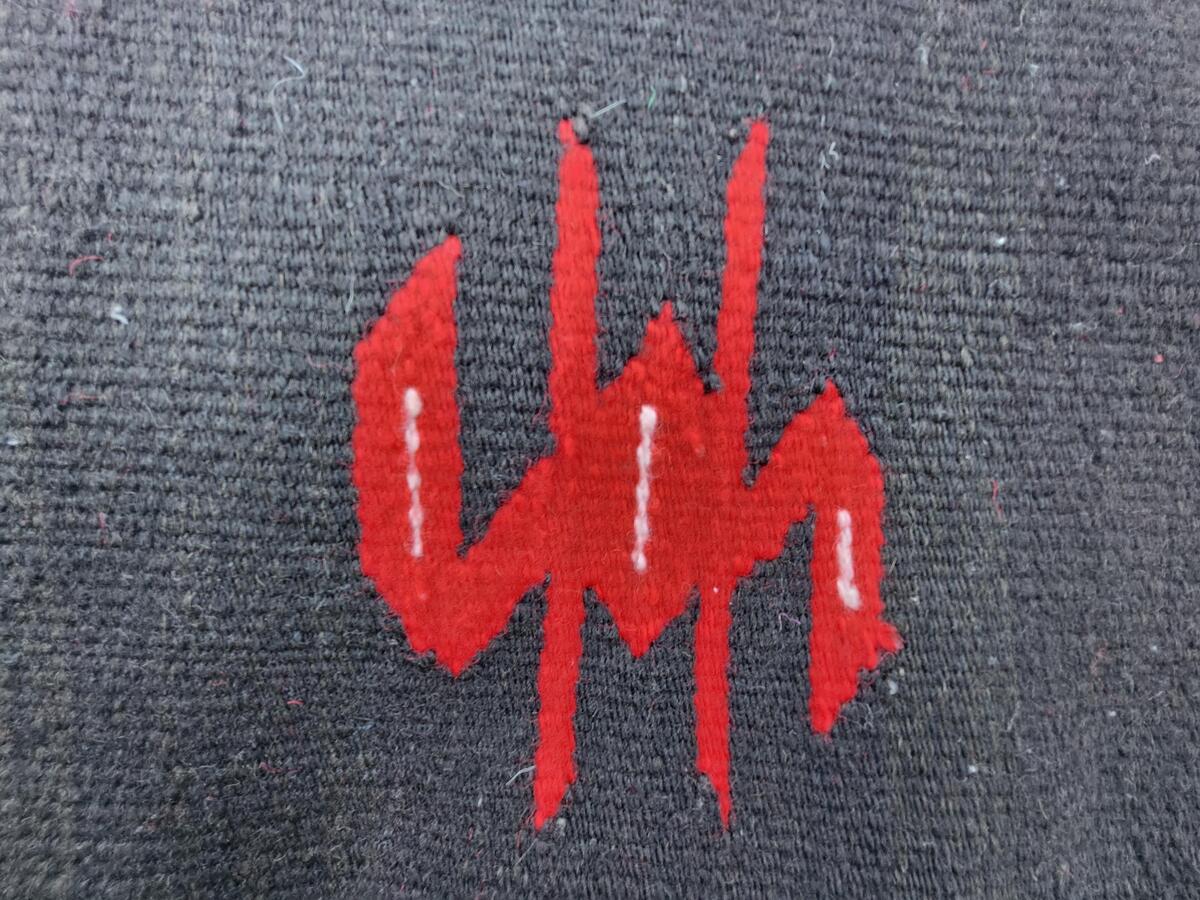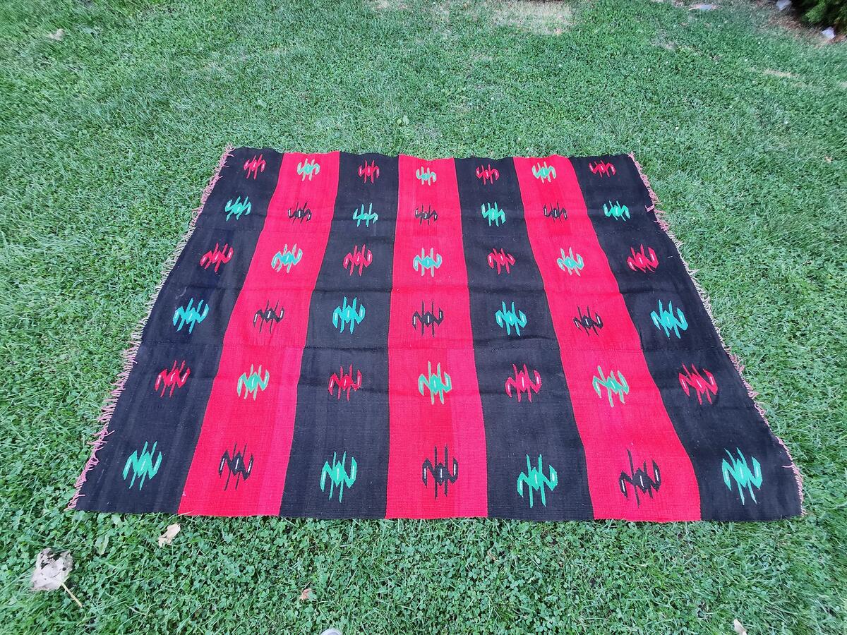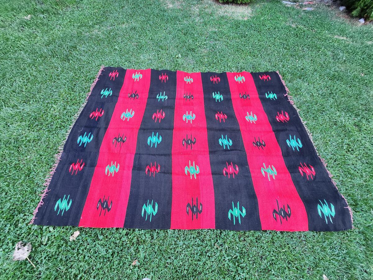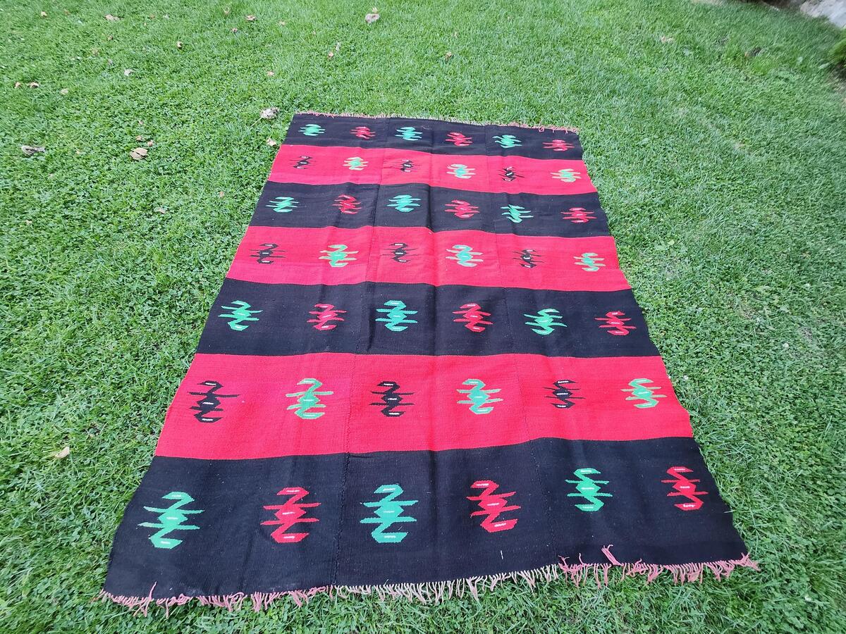 Macedonian woolen rug, hand woven wool antique rug in traditional Macedonian pat