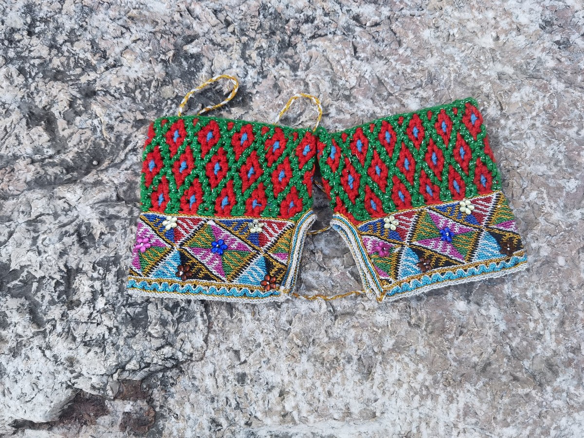 This is a pair of amazing looking handmade, hand knitted leggings made of wool, extra decorated with silver thread, and multi color sirma thread. The leggings were made in the 1960's or the 1970's but a re kept in exceptional conditions, without damages of any kind. They have never been worn before. Lovely made, complex, detailed pattern and many colors to present in a small fashion attachment. Beside its original use they can be used as a sleeves patch or you can find any other use by your imagination and creativity.