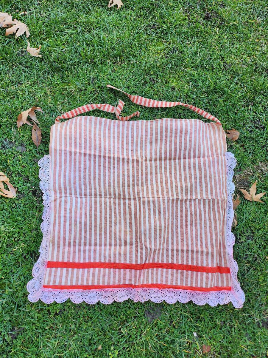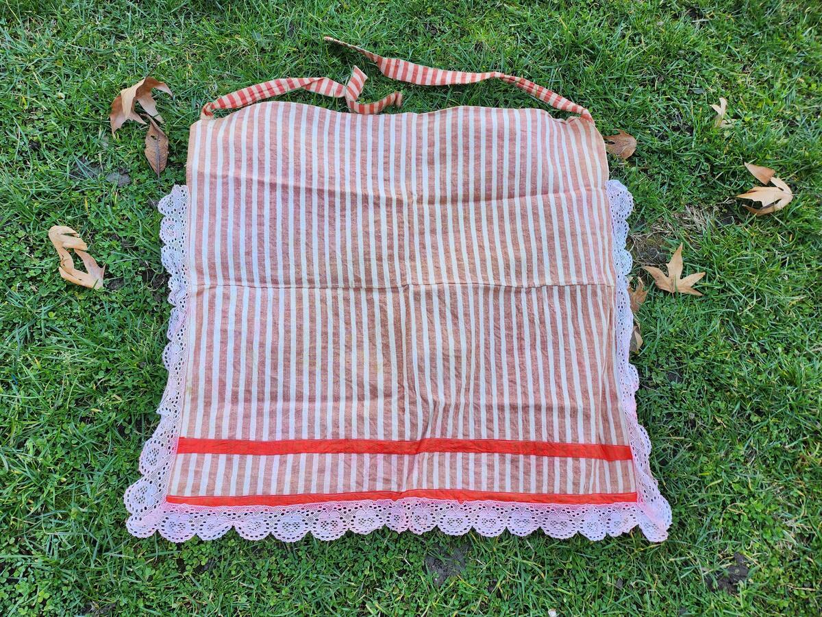 The apron is preserved in a good condition for its age, without rips and holes. Unfortunately the colours are mixed, caused by washing.