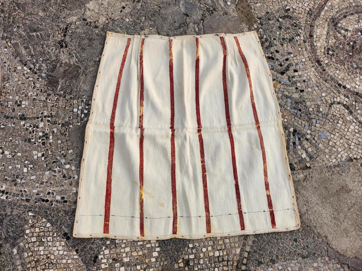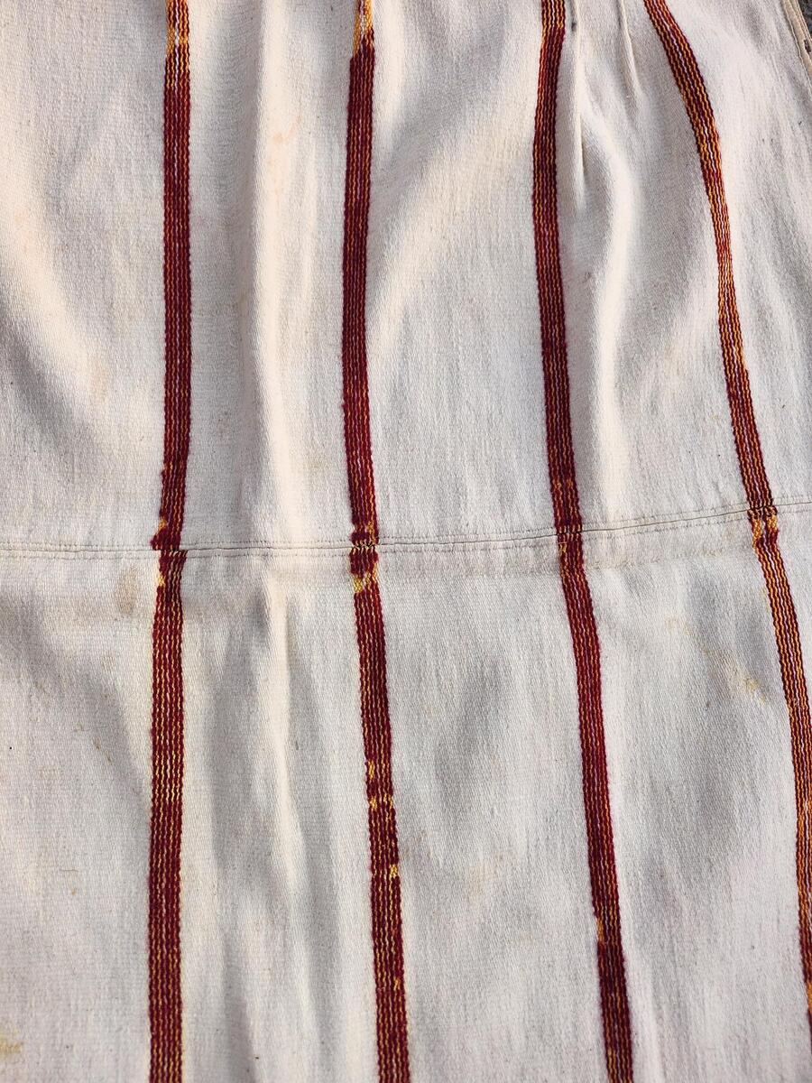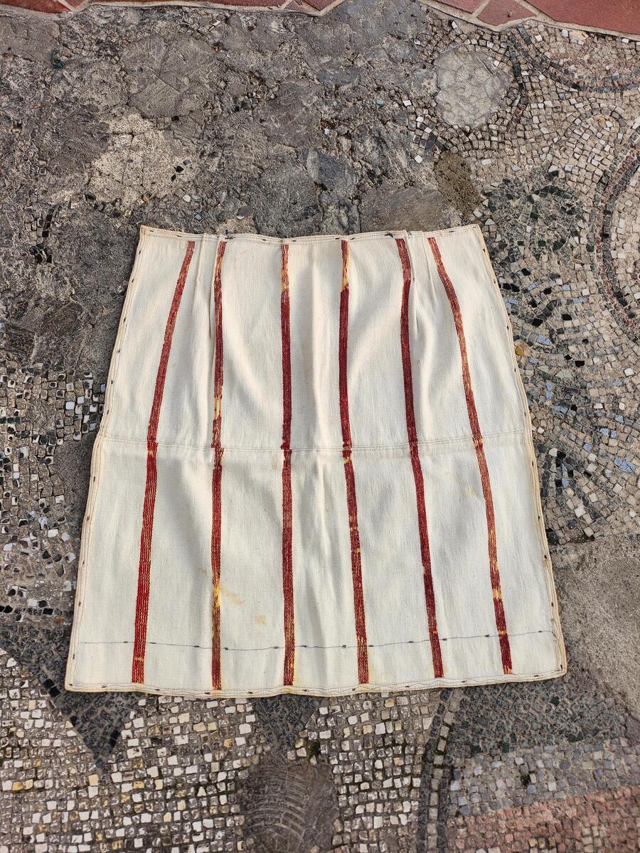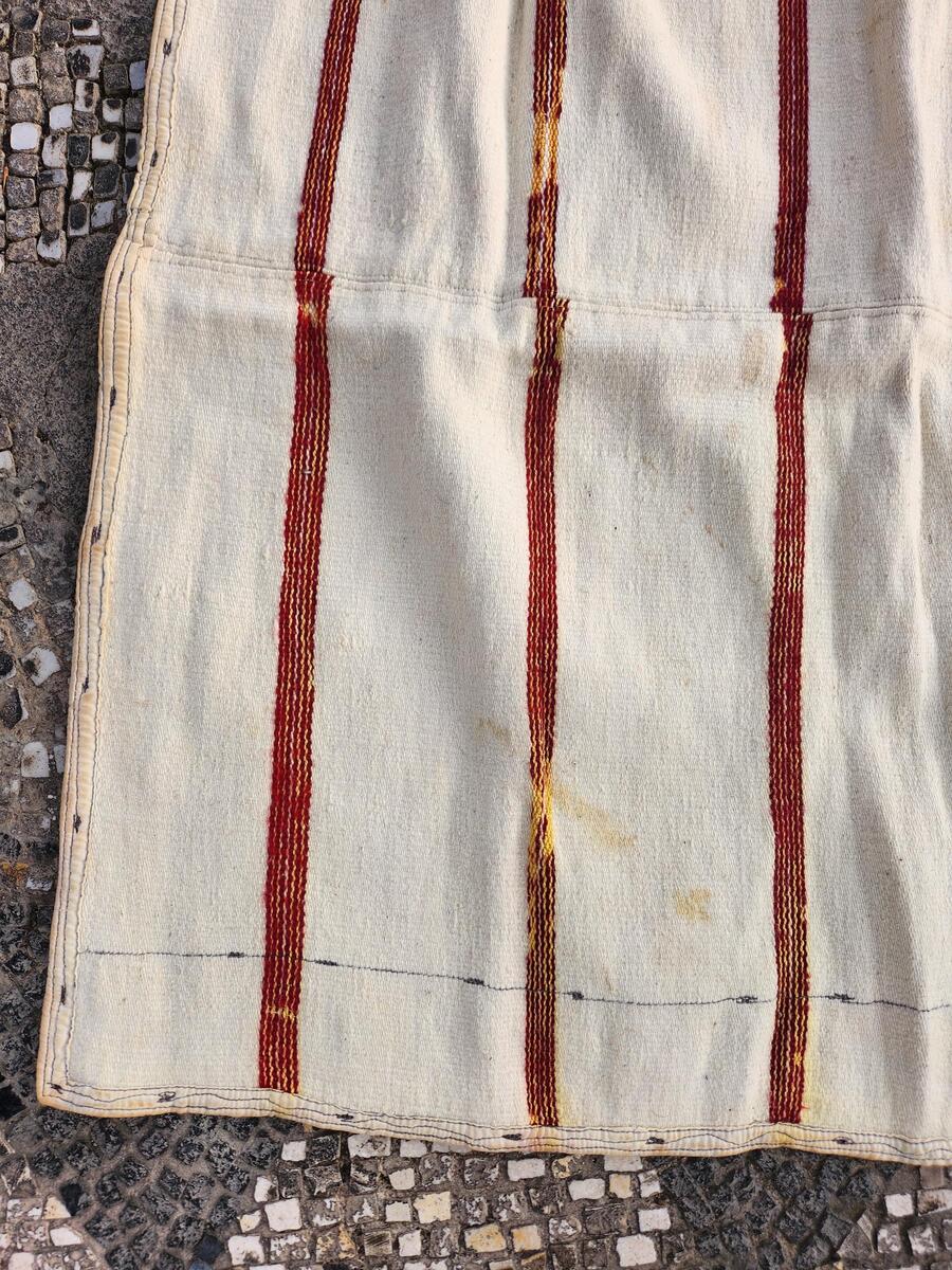 This is a hand woven cotton apron, made in the first half of the XX century in Macedonia. It is an atypical looking apron for these regions and unusually made of cotton instead of wool. Unfortunately the apron have some small stains of age and small damages. That is why the price is lower.