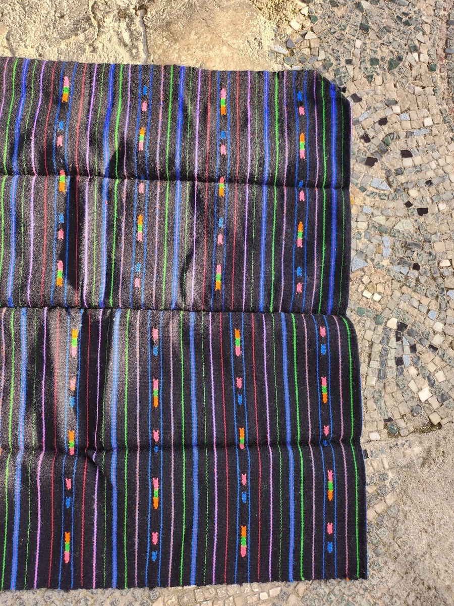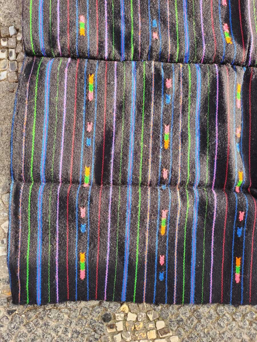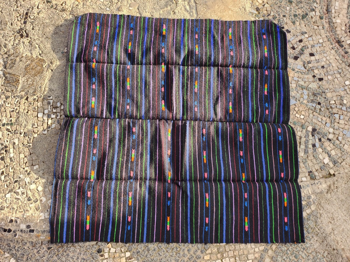 This is a completely handmade apron, made in the very beginning of the XX century. The apron is made of natural and pure wool, hand woven on a loom. The apron was part of a women's folklore costume from the villages of the Ohridsko pole region at the time, the village of Mesheishta. The apron was part of an older woman's folk costume.