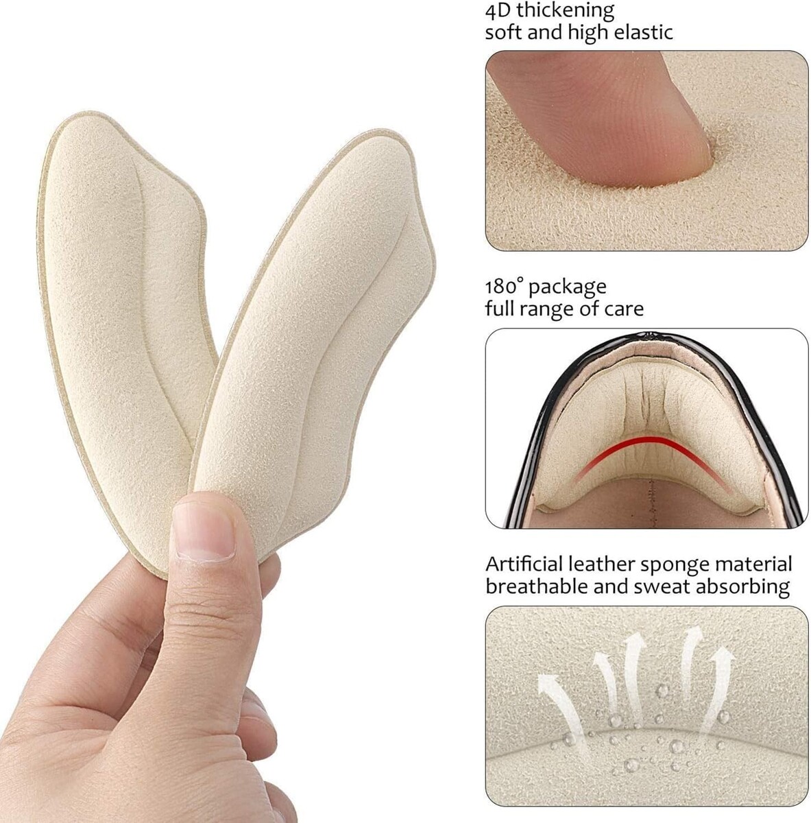 4 Pairs of Breathable Suede Heel Cushions - Perfect for Every Shoe Size
