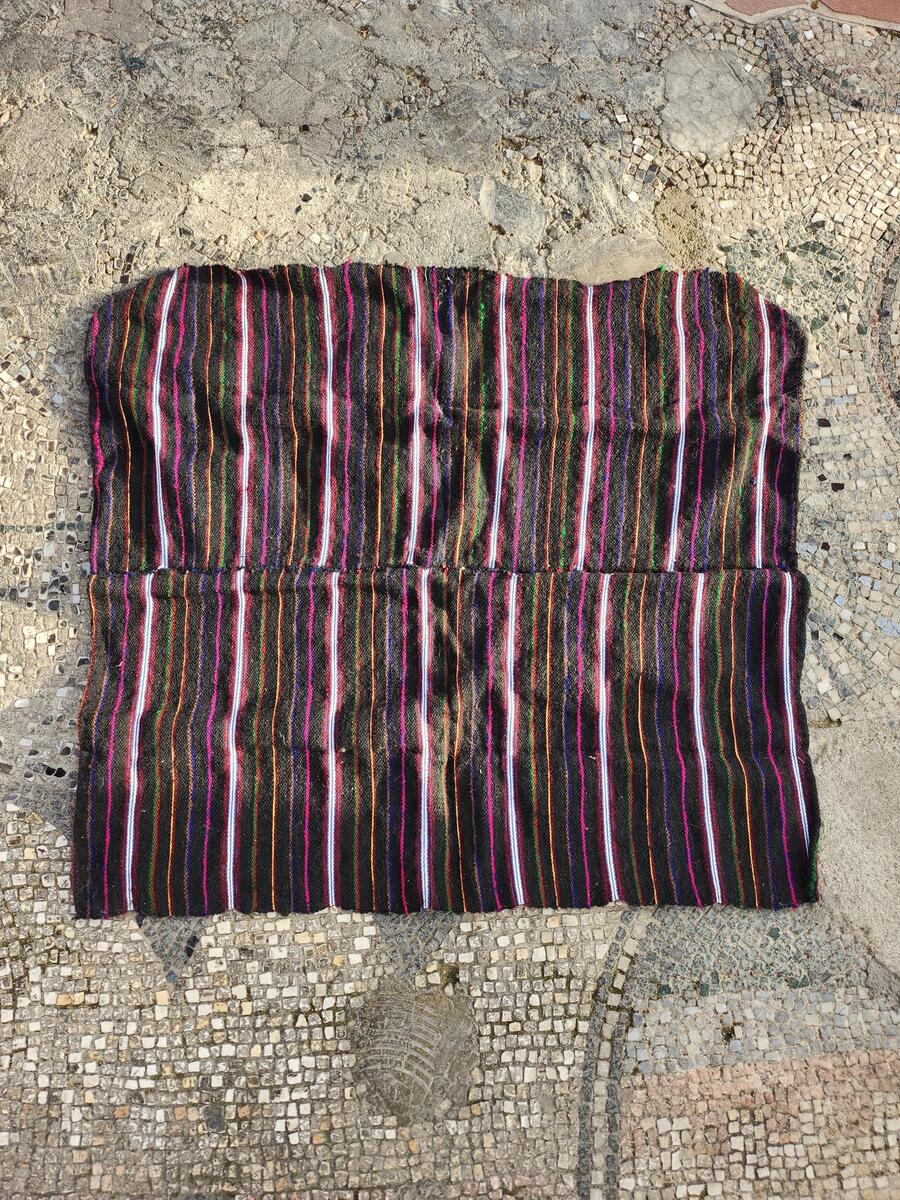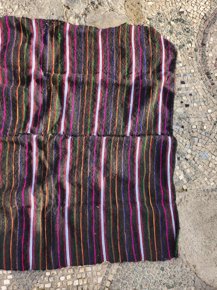 This is a completely handmade apron, made in the first half of the XX century. The apron is made of natural and pure wool, hand woven on a loom. The apron was part of a women's folklore costume from the villages of the Ohrid region at the time. It was meant to be worn by an older woman.