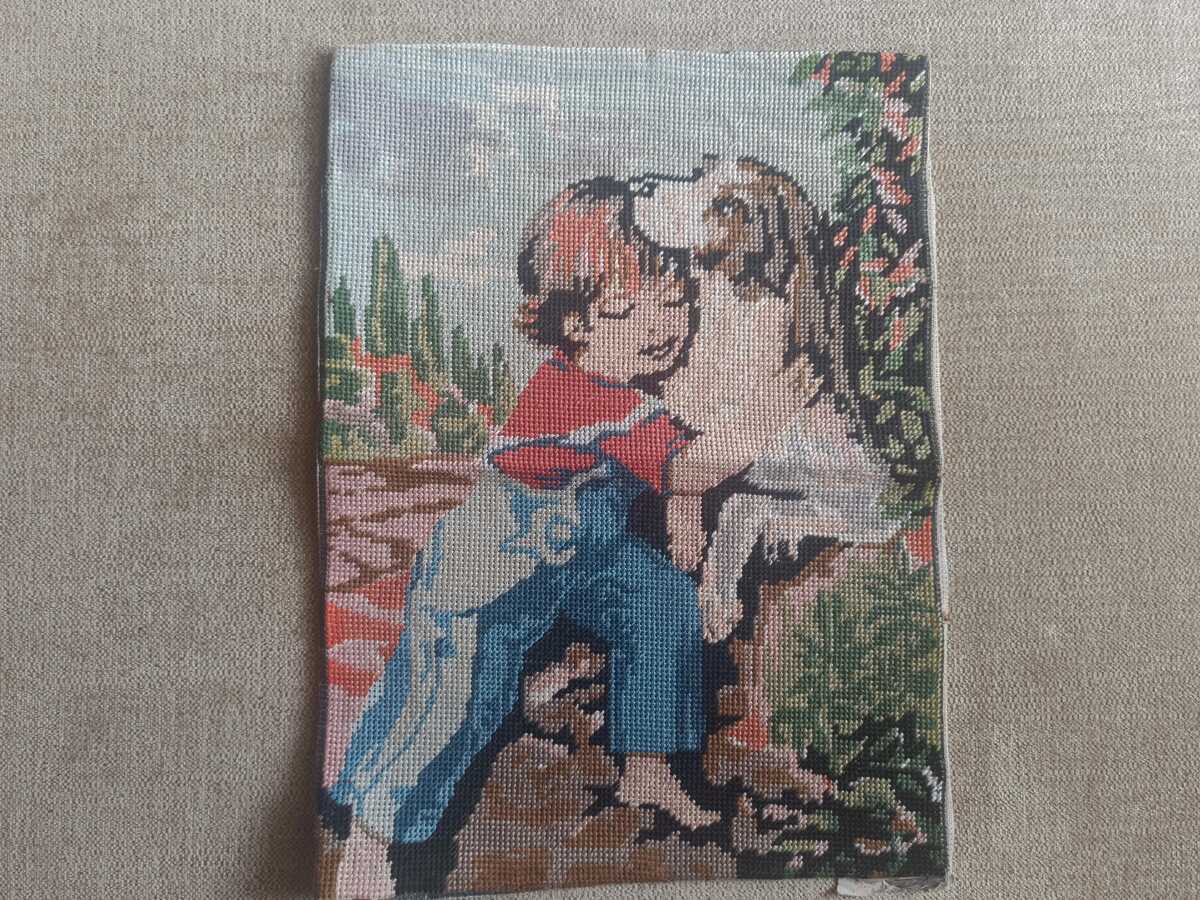 Vintage Needlepoint Tapestry: Boy and Dog, and similar items