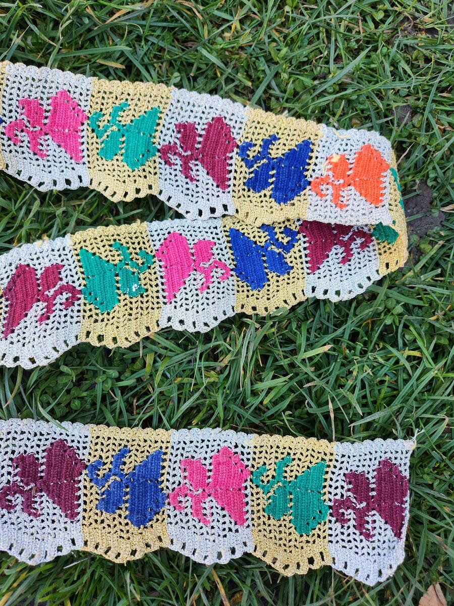 Hand knitted lace, antique handmade patch, part of folklore sash decor