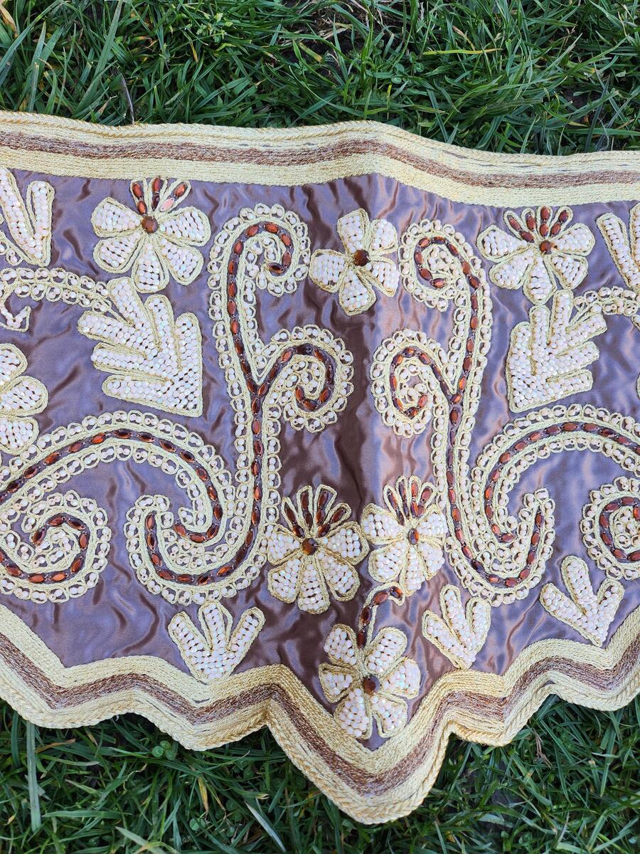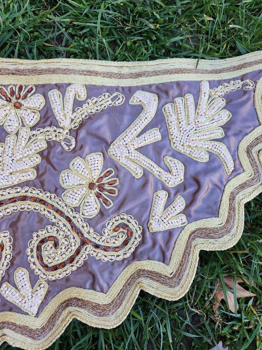This is a lovely looking, handmade, hand embroidered patch, made in the middle of the XX century. The patch is hand embroidered with silver and gold string thread (silver and gold srma) and decorated with sequins.