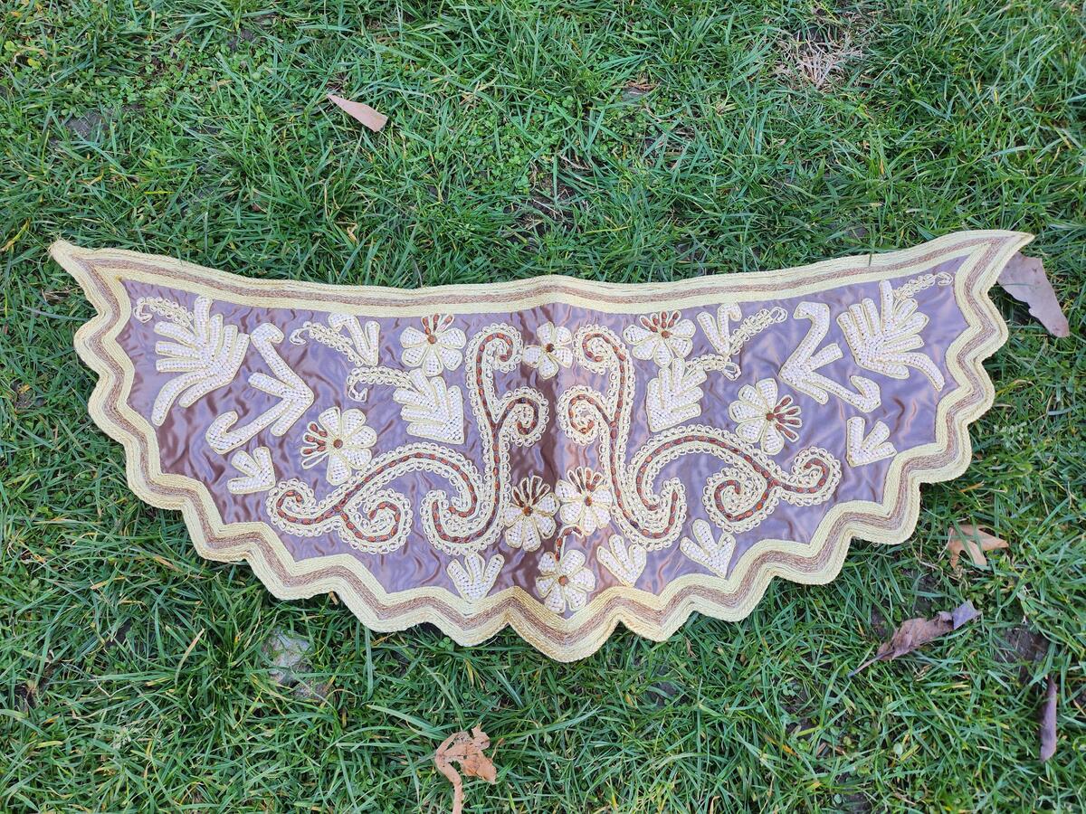 This piece was going on the font side at the women's folklore costumes in some villages in the western part of Macedonia at the time, made and worn by Islamic women.