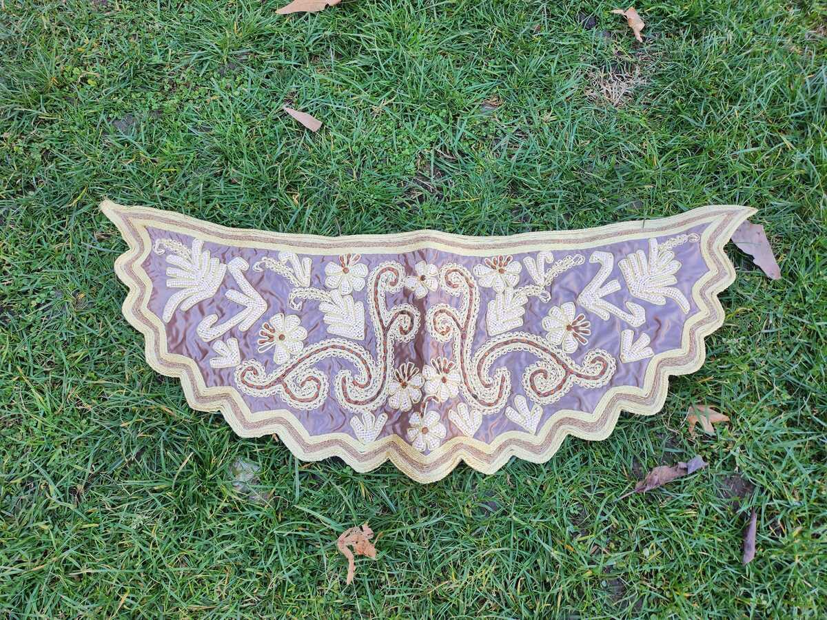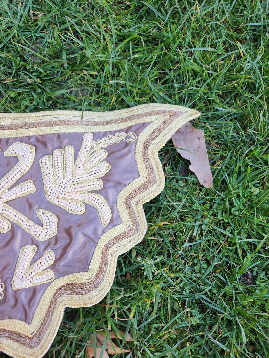 Hand embroidered srma patch, silver and gold string thread embroidery decorative