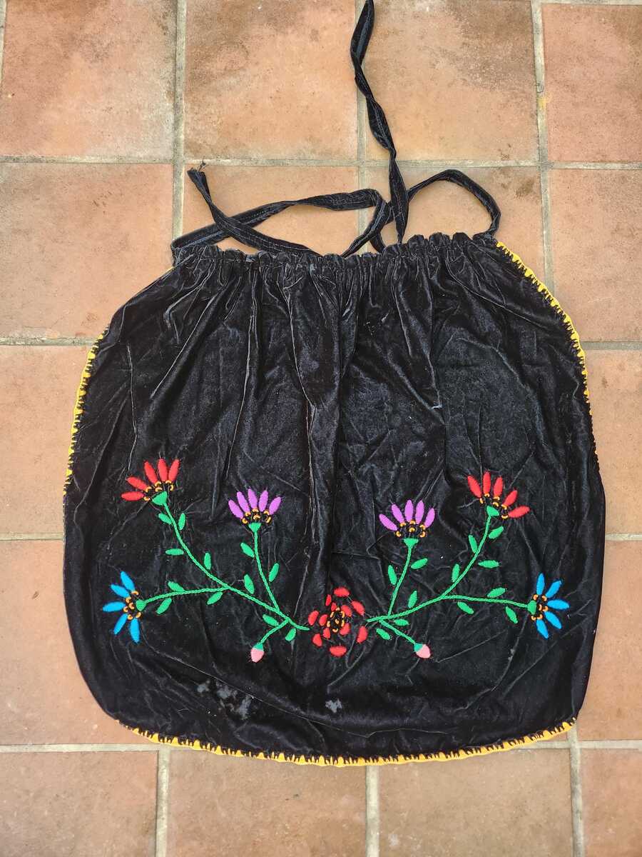 Vintage velvet apron, Macedonian mid century handmade apron, folk accessory
