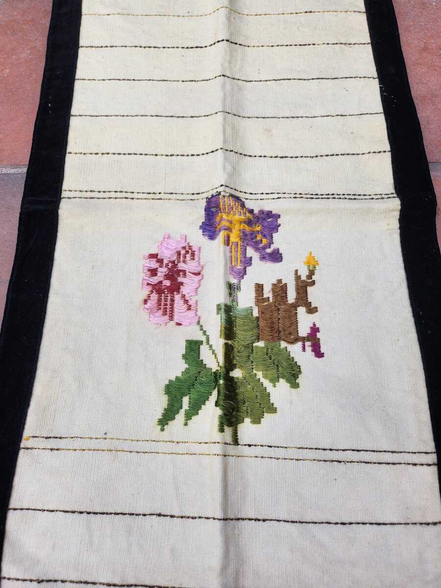 This is a handmade apron from the middle of the first half of the XX century. The apron is made of cotton, it was hand woven on a loom and after is hand embroidered. This apron was part of a woman's folklore costume in Bulgaria at the time.