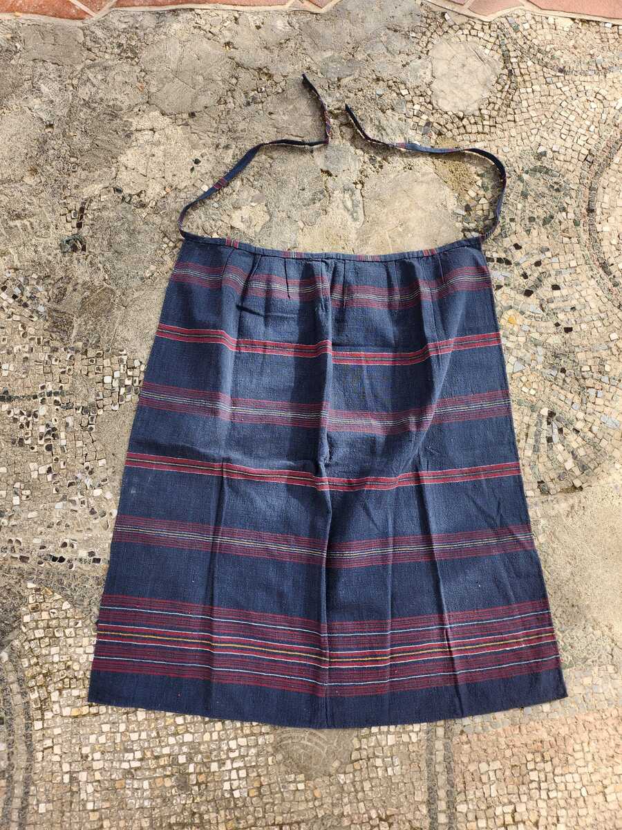 This is a completely handmade apron, made in the first half of the XX century. The apron is made of natural and pure cotton, hand woven on a loom. This was a common apron at the time, worn by the housewives in Macedonia as part of the everyday wear.