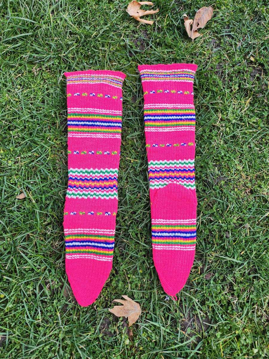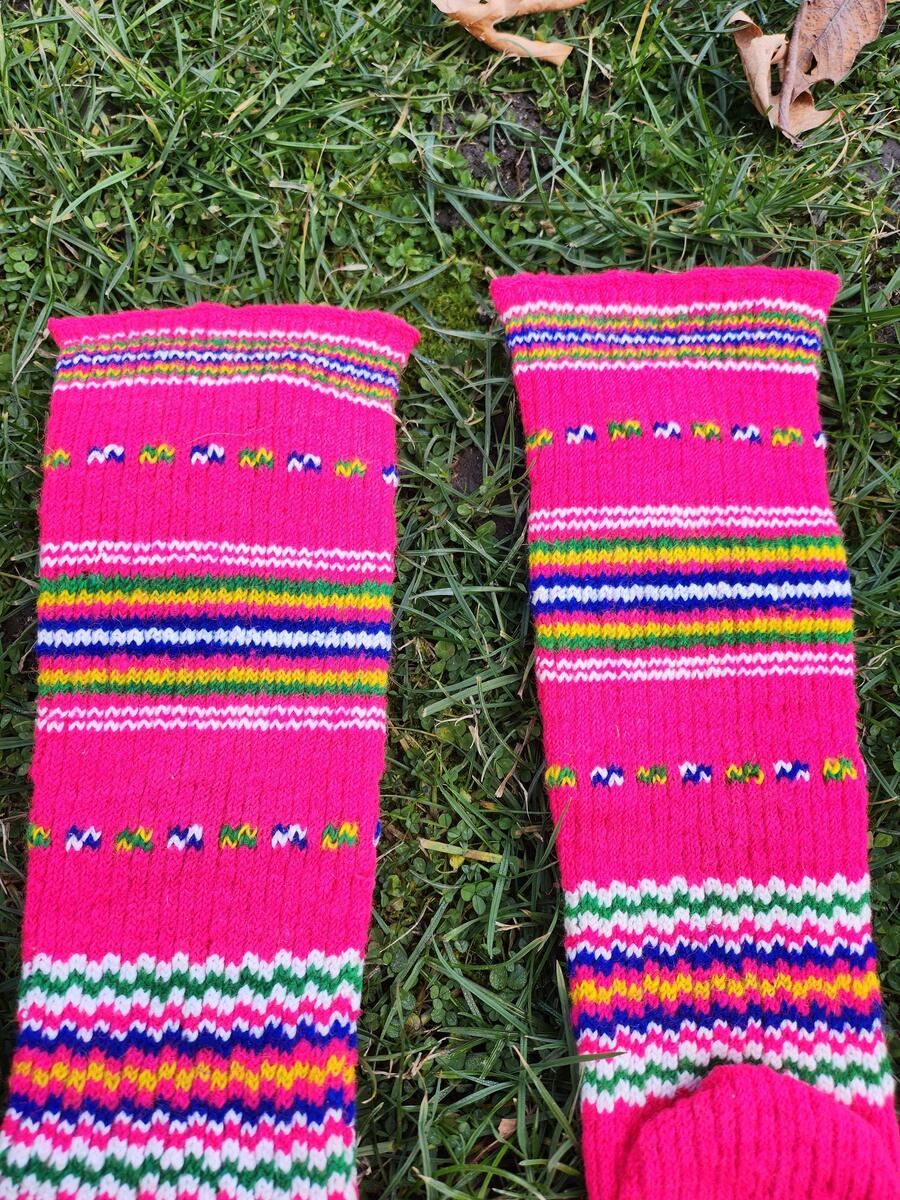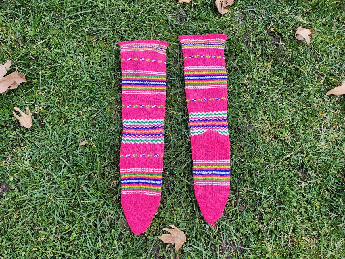 Hand knitted folk socks, traditional Macedonian socks from Ohridsko and Strushko
