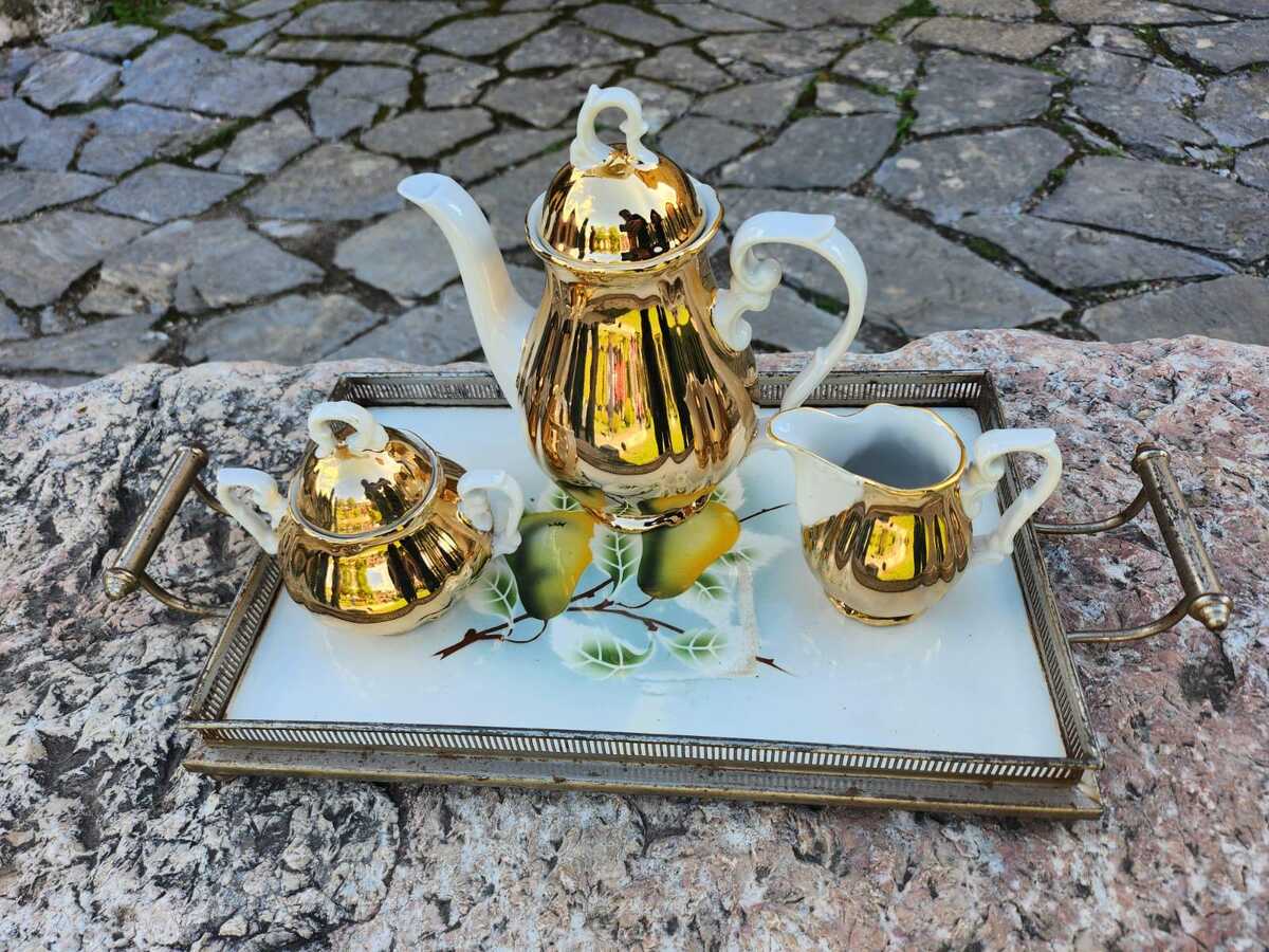 Golden tea set, vintage 70s Bavaria fine porcelain gold tea set, bohemian decor