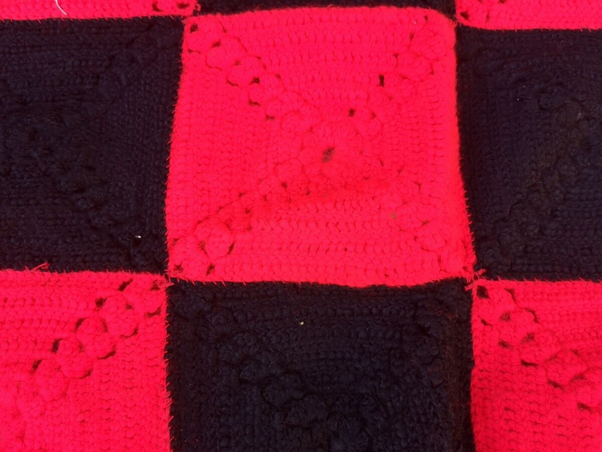 Vintage hand knitted sofa cover, hand knit bed cover, black and red bed cover