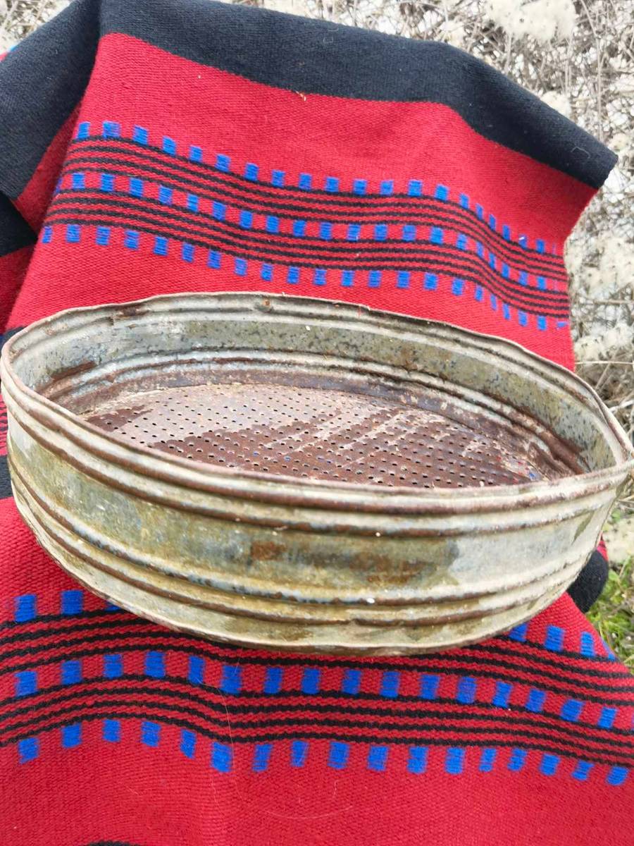 Primitive handmade sieve, old metal sieve, rustic country home decor, primitive