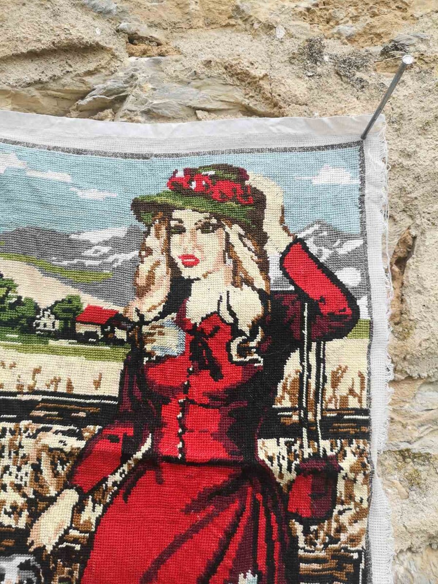 Handmade and finished gobelin needlepoint picture, finished cross stitch picture