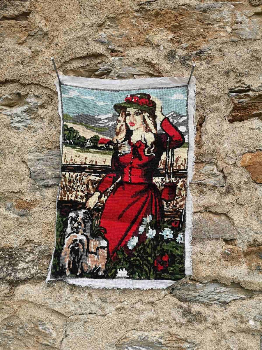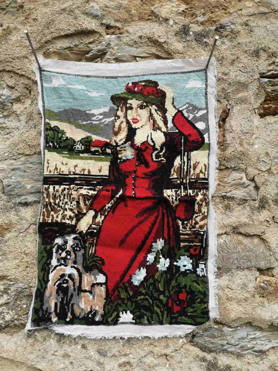 The needlepoint picture goes without frame.