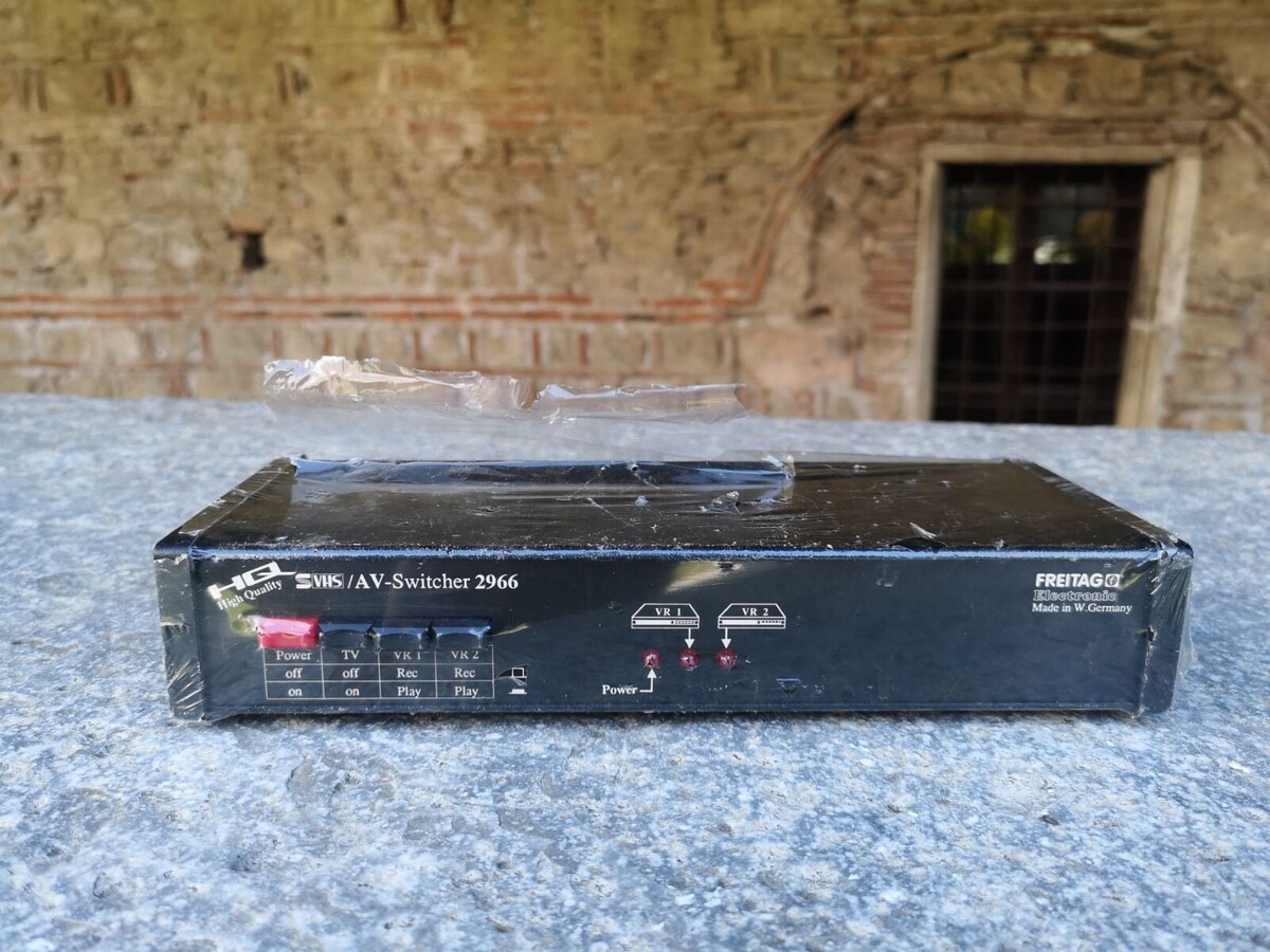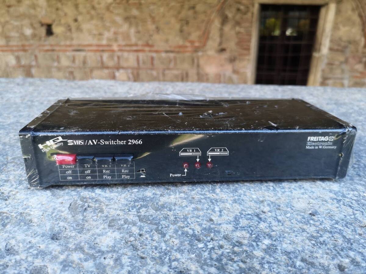 This is a vintage VHS/AV switcher, Freitag 2966 made in the 1980's in West Germany. It is kept in a great condition, mint condition. It has never been used.