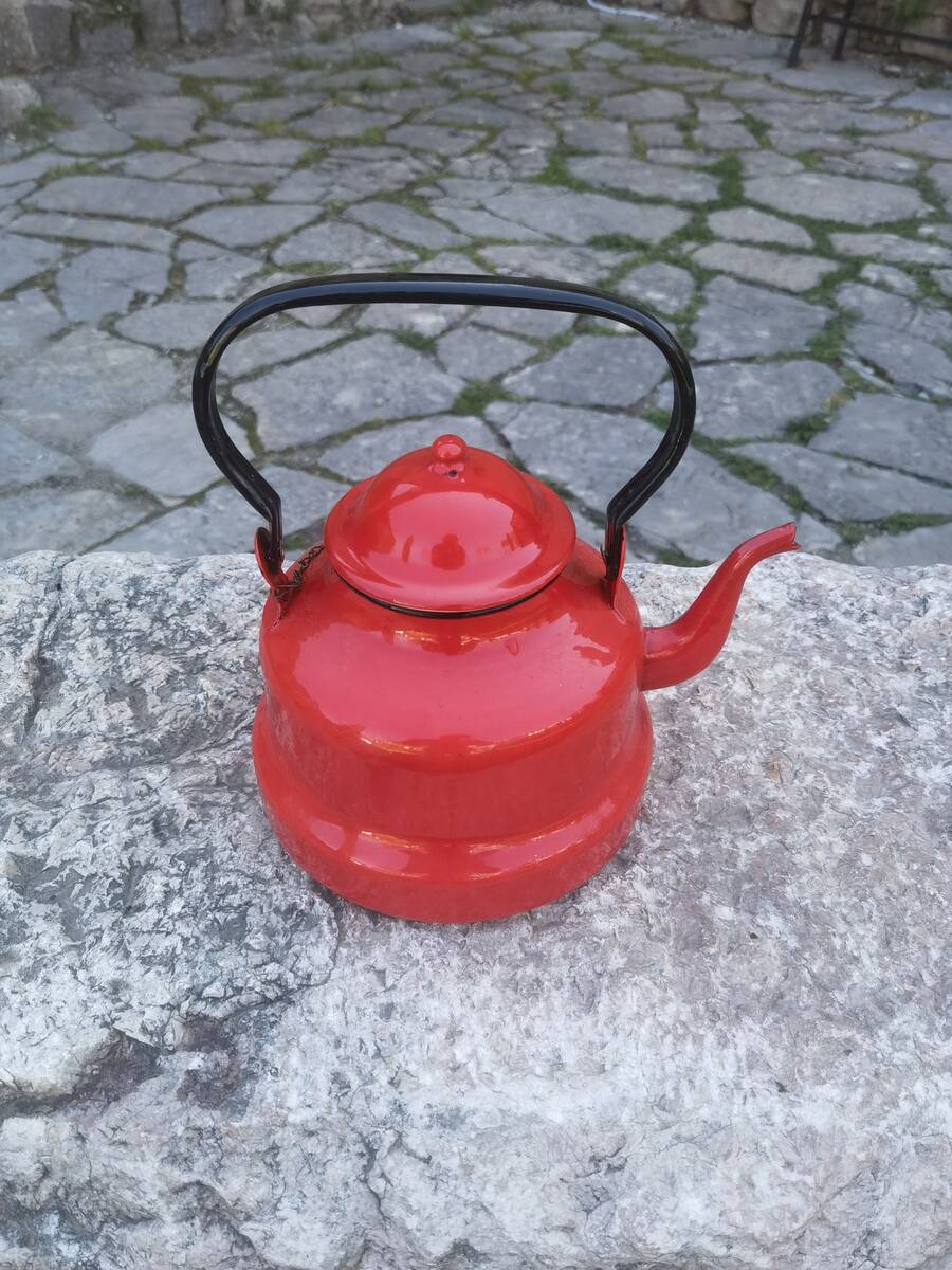 Large red metal teapot, vintage 1960's Yugoslavia teapot 3 Litres capacity