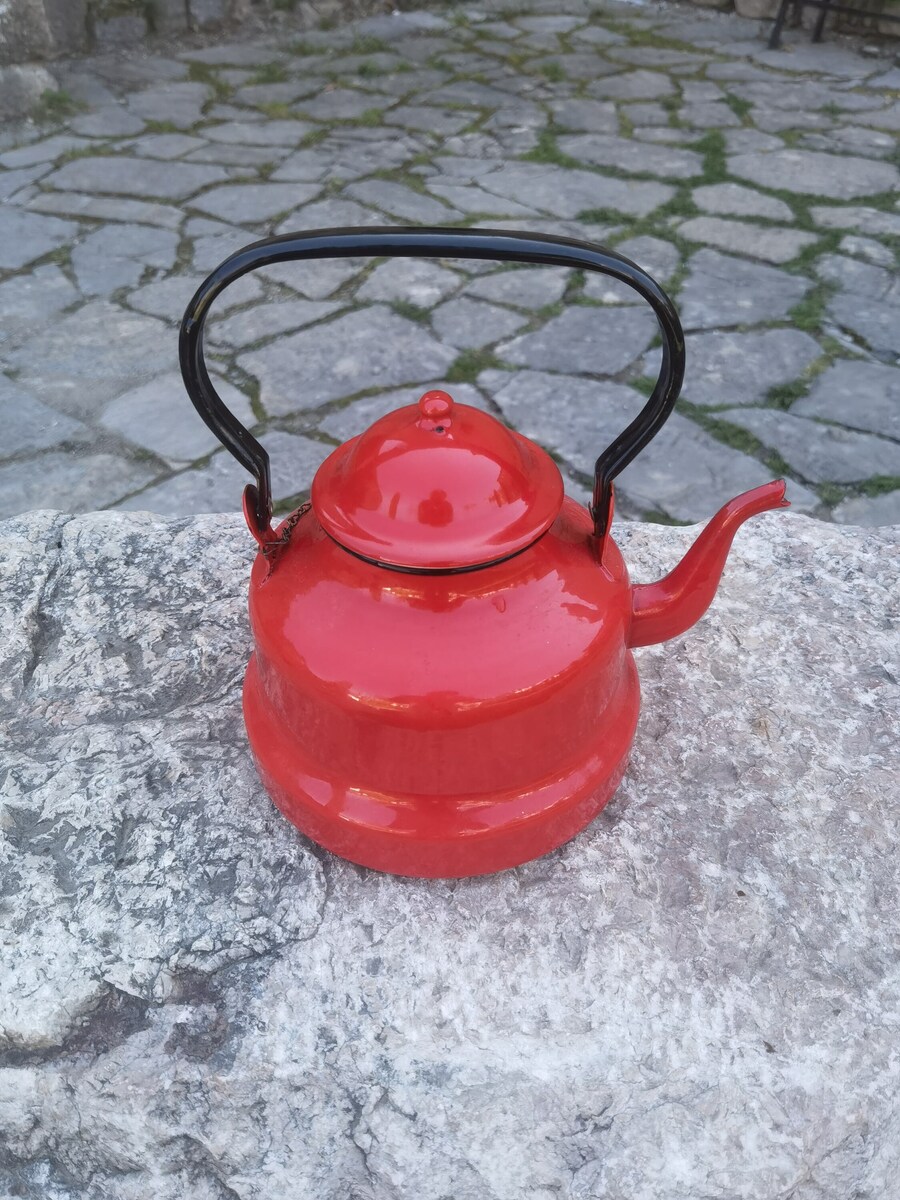 This is a lovely vintage metal teapot in eye-catching red color. It was made in the 1960's or the early 1970's in the former Republic of Yugoslavia. It is a high quality teapot made by high quality standards. Worth to be mentioned is that it is a very large teapot with a capacity of 3 litres. The diameter of the bottom is 20 cm (7.8 inches). The teapot is kept in an excellent condition for its age, it has never been used. No visible scratches, outside or inside.
