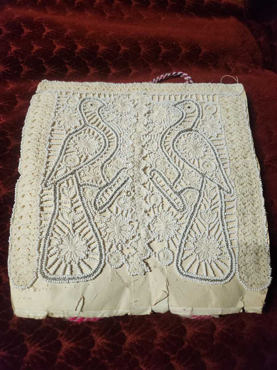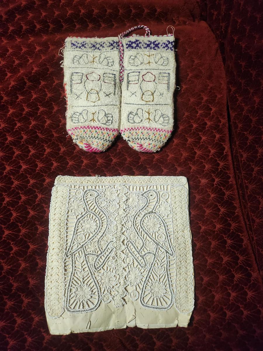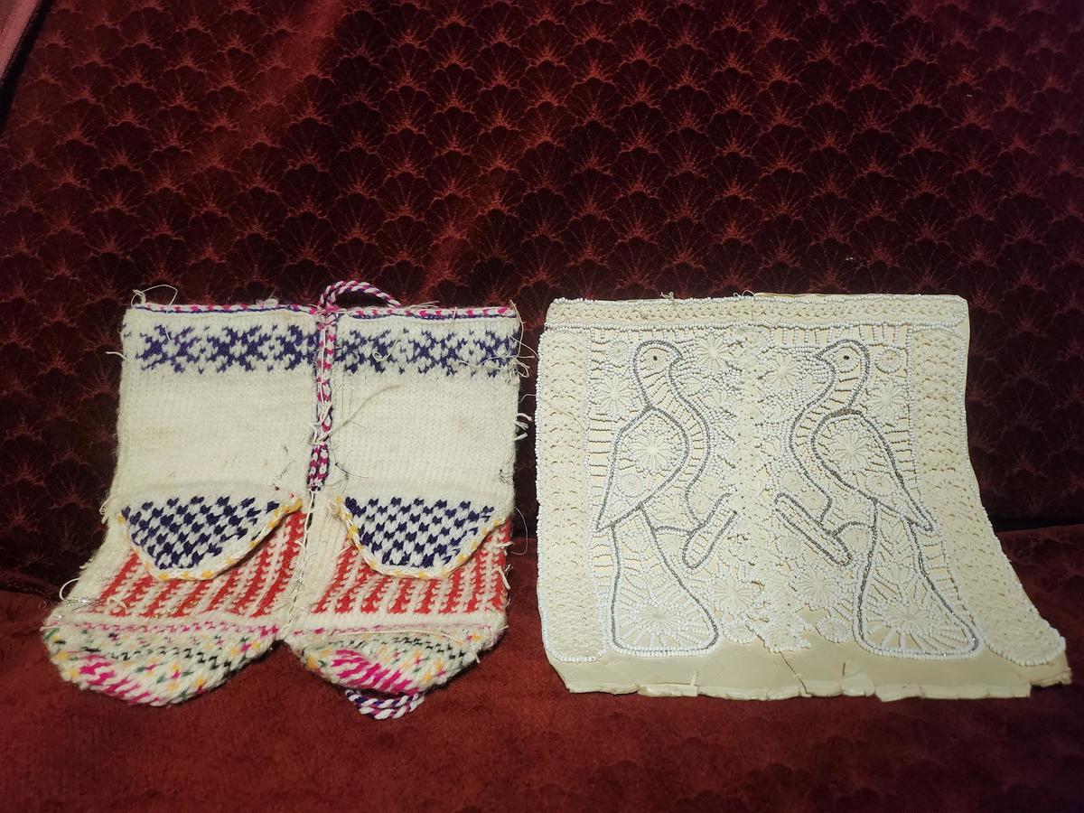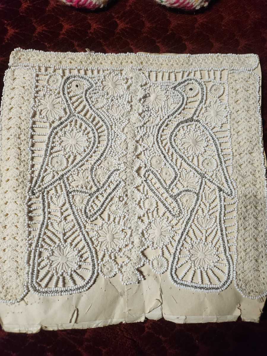This is a pair of hand knitted socks, decorated with beads, made in the middle of the XX century. These socks were part of the wedding gifts of the weddings at the time common for the small ethnic group of Goranci in Macedonia. They are preserved in excellent condition, without damages of any kind and of course never worn before.
