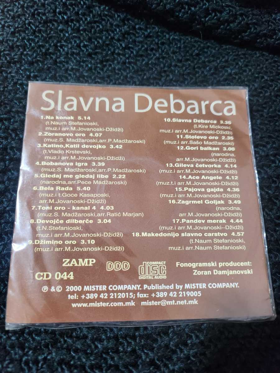 This is a CD with 18 Macedonian patriotic folk songs performed by Slavna Debarca named ''Na Konak''. The CD was published in 2000 but its has never been used, still in original packing.