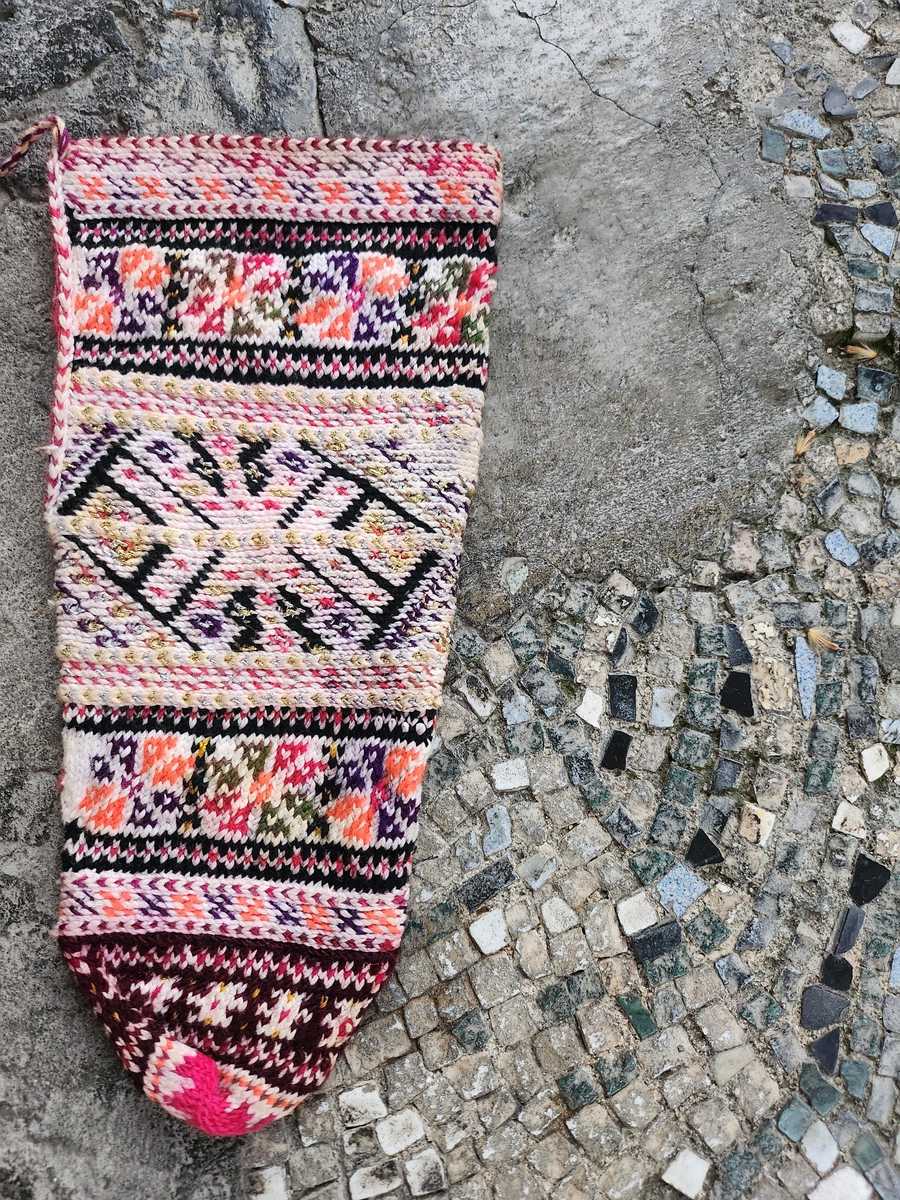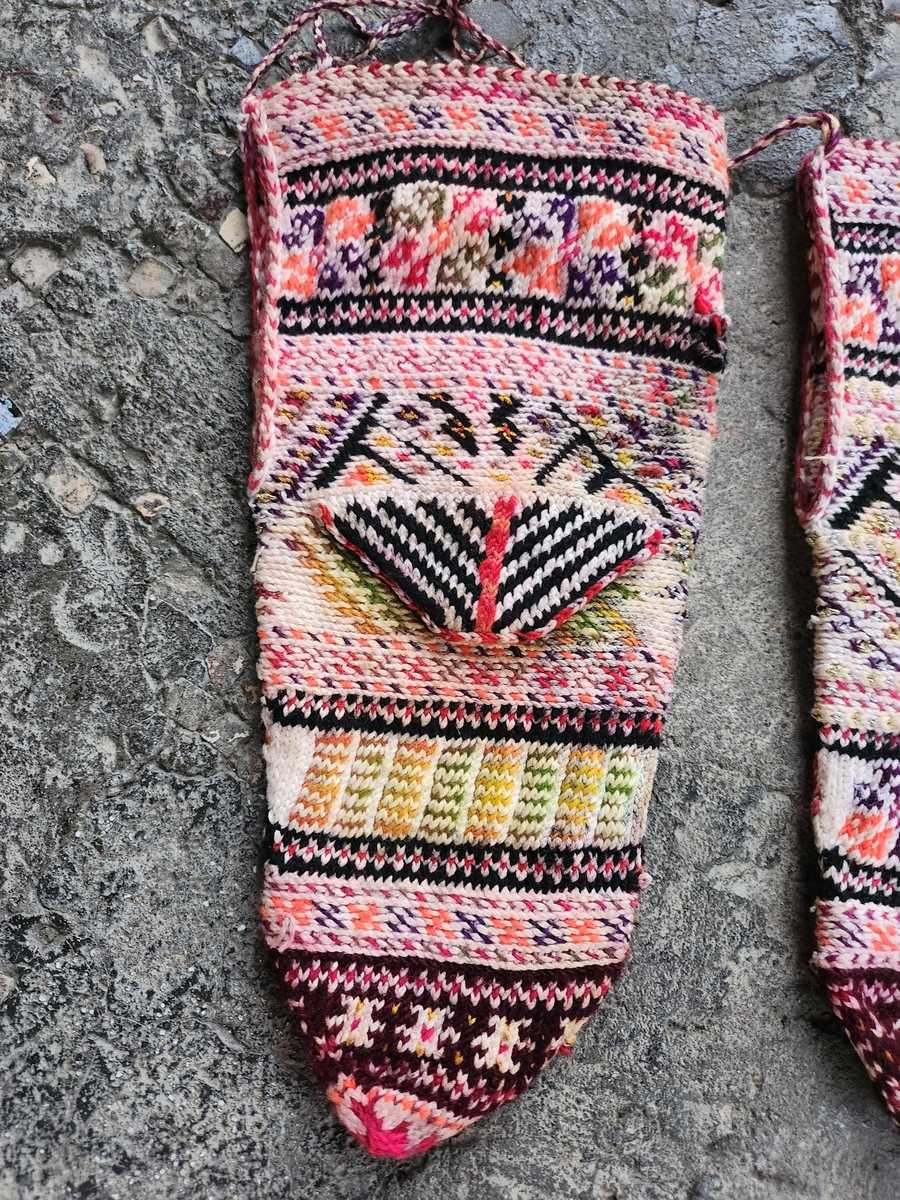 This is a beautiful pair of socks made of natural wool and hand knitted. The socks were made in the first half of the XX century, never been worn before. Unfortunately they have some stains or dirt and that is why the price is lower than their real value. They were made to be part of a women's ethnic costume in the first half of the XX century by and for Macedonian Islamic women.