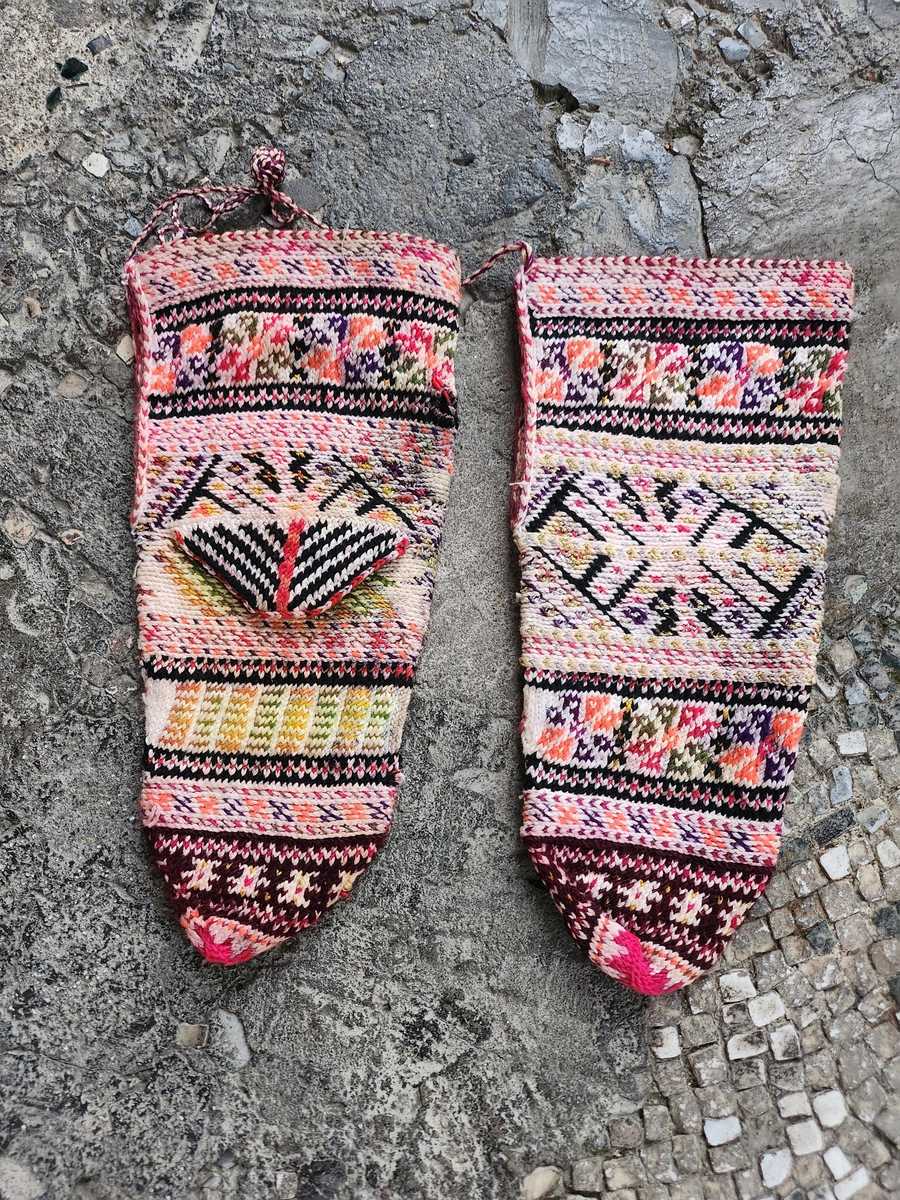 Hand knitted folklore socks, handmade Macedonian woolen colorful women's socks