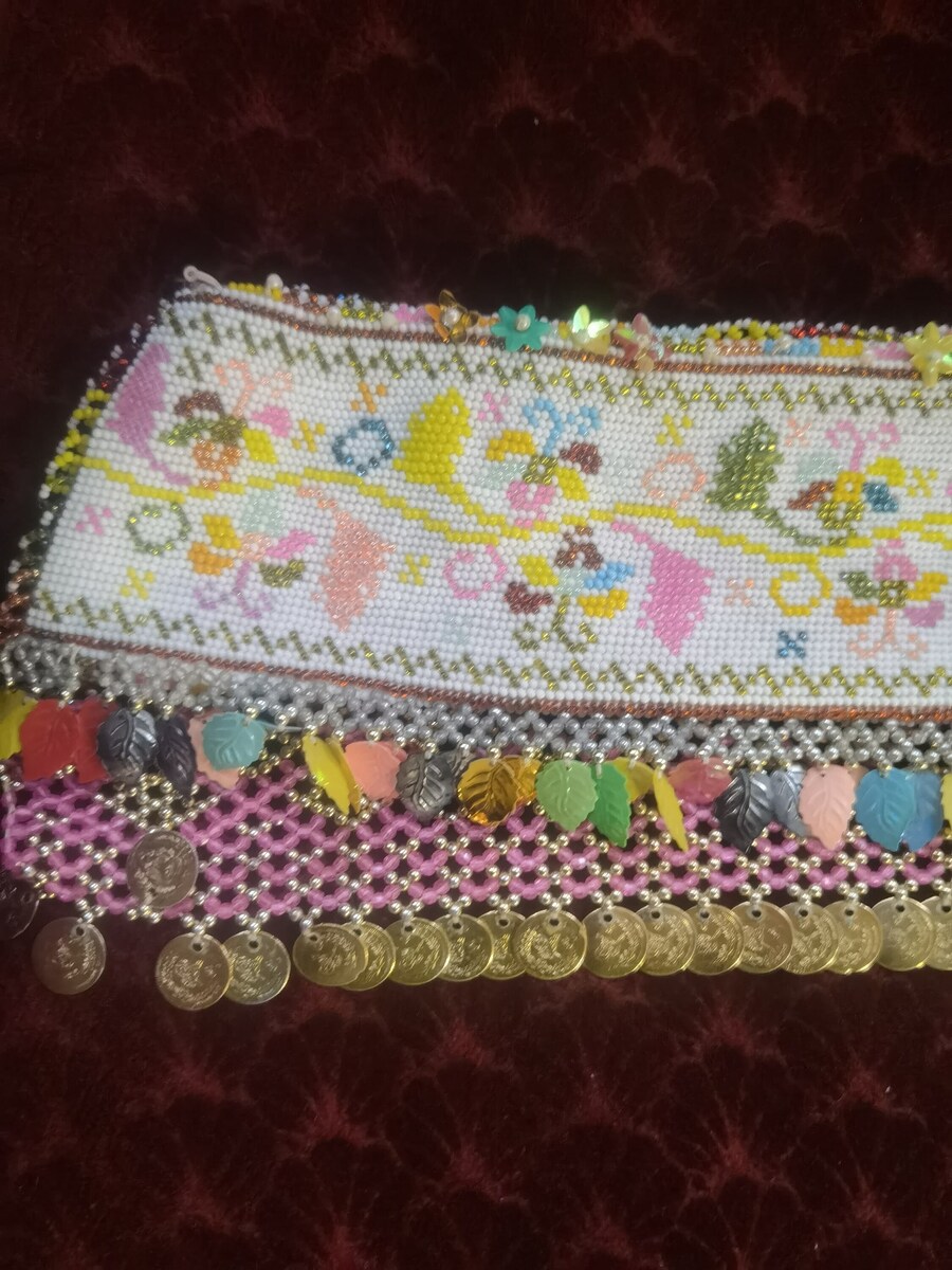 Beaded handmade folklore patch, Veles region handmade woman's ethnic decorative