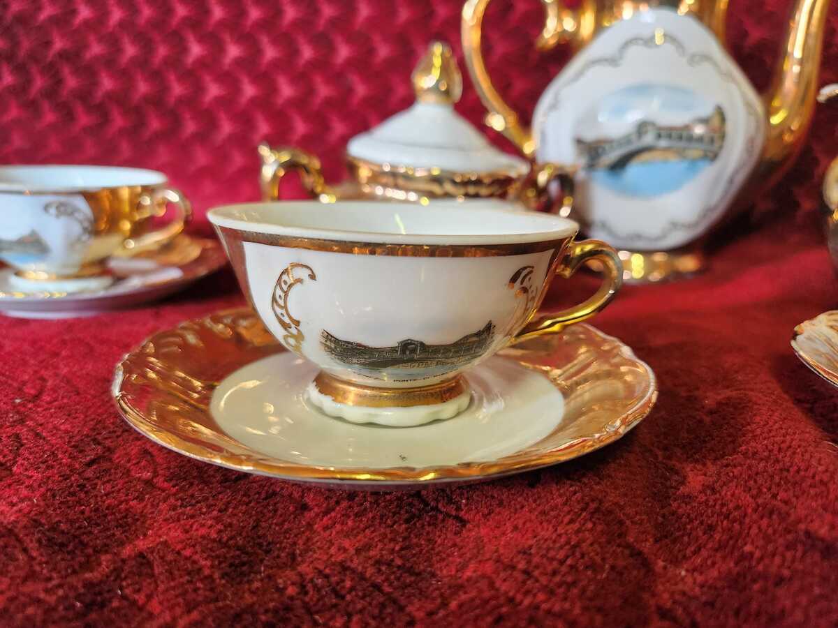 Venetian gold tea set, vintage Renaissance design Italian tea set