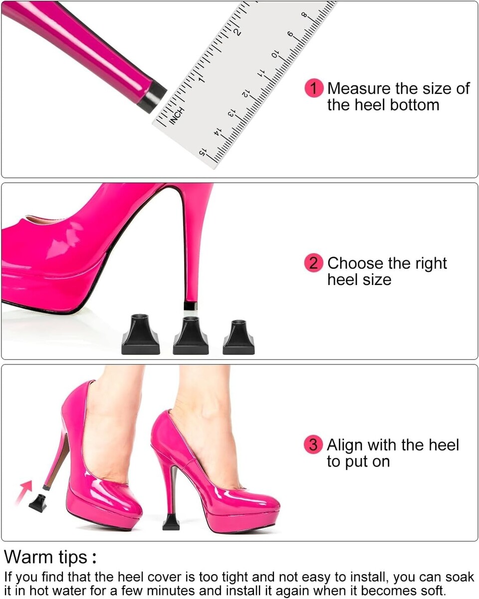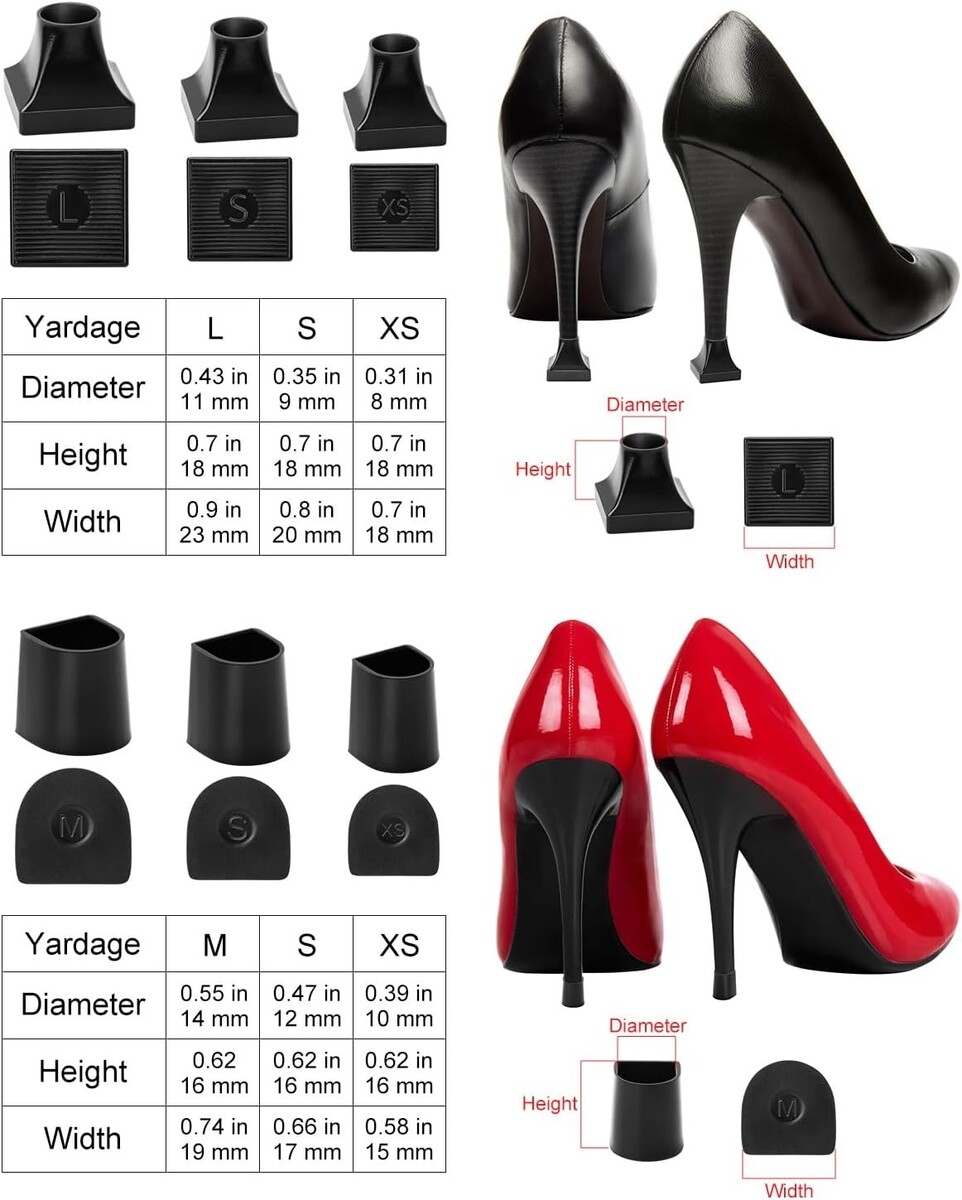 Introducing our exclusive collection of high heel protectors, designed to extend the life of your favorite shoes while adding a touch of elegance to every step you take. With 24 pairs of heel caps, including both square and U-shaped options, you'll always have the perfect fit at your disposal.