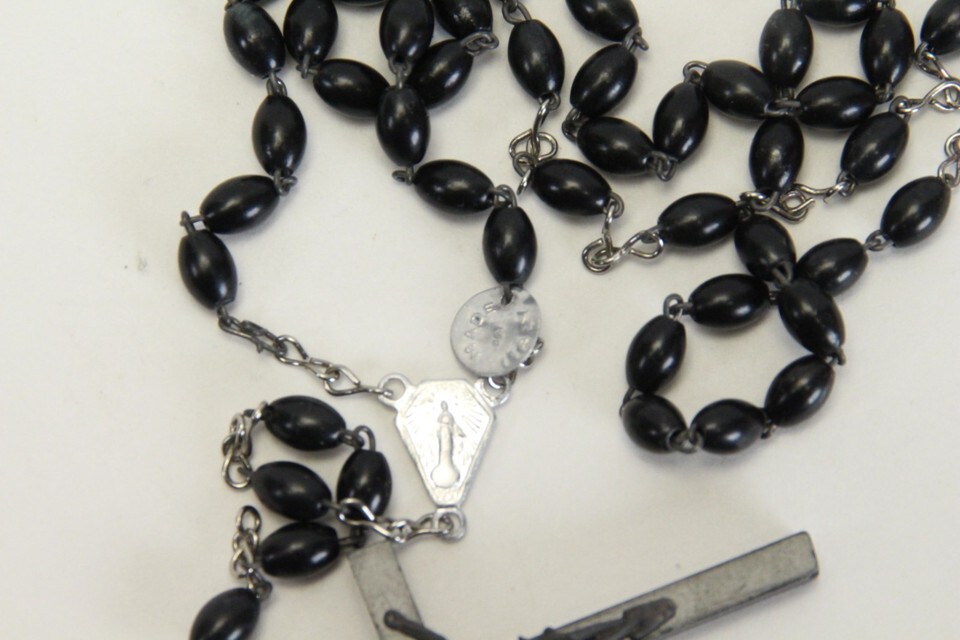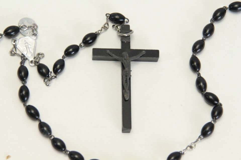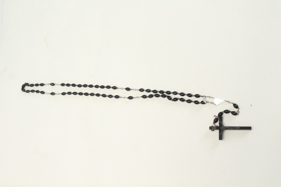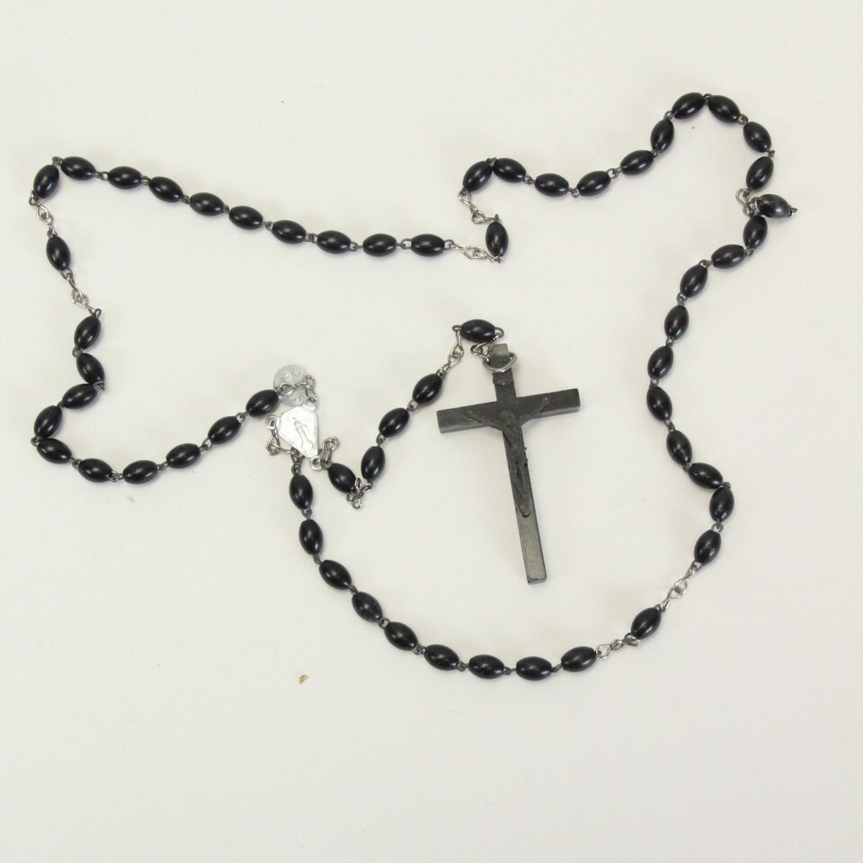 Catholic Rosery Cross Crucifix 18" Necklace Prayer Italy Black Beads Jesus